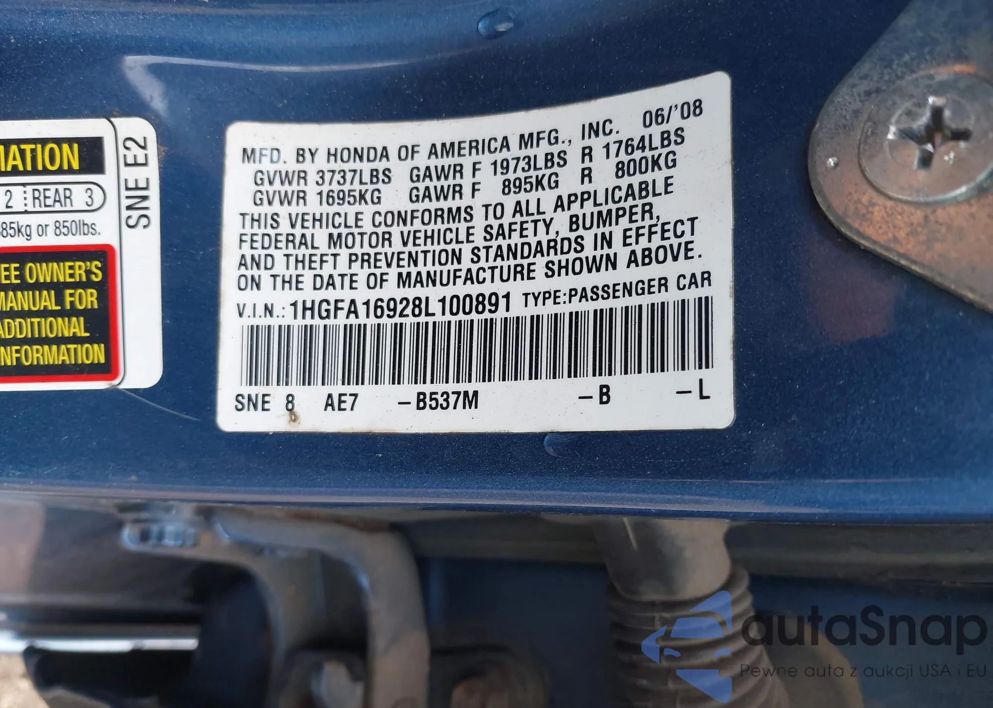 VIN: 1HGFA16928L100891