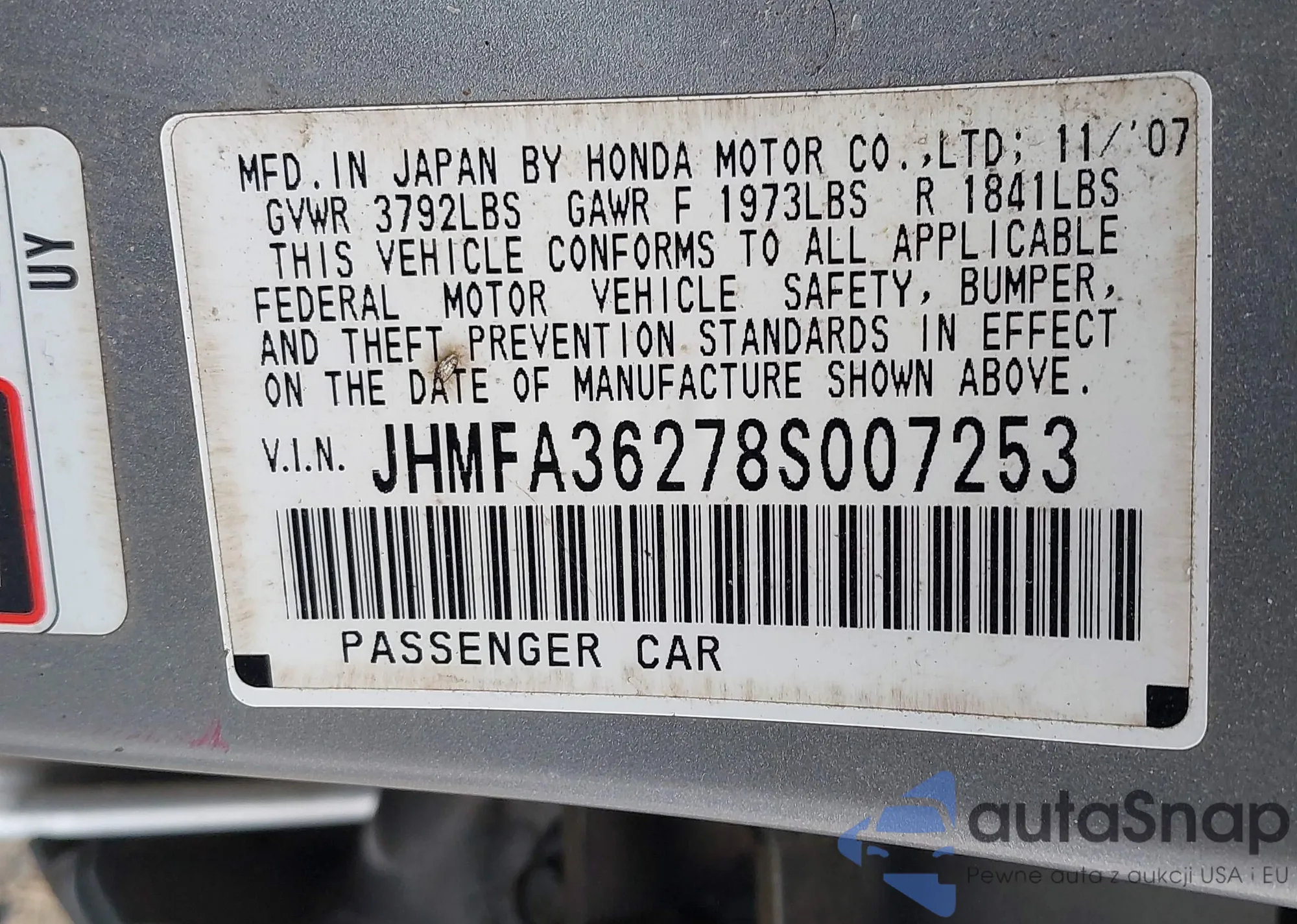 VIN: JHMFA36278S007253