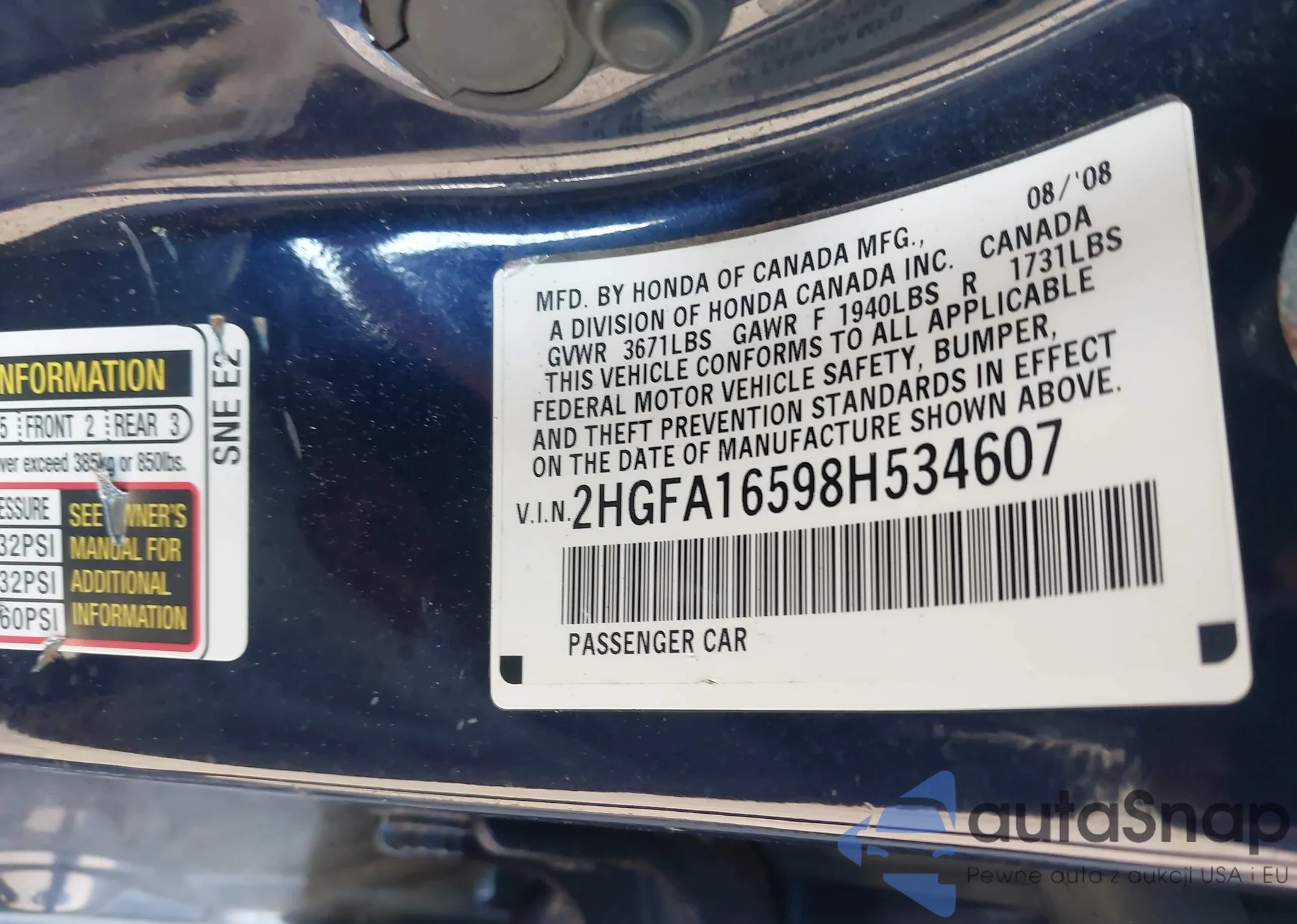 • VIN: 2HGFA16598H534607