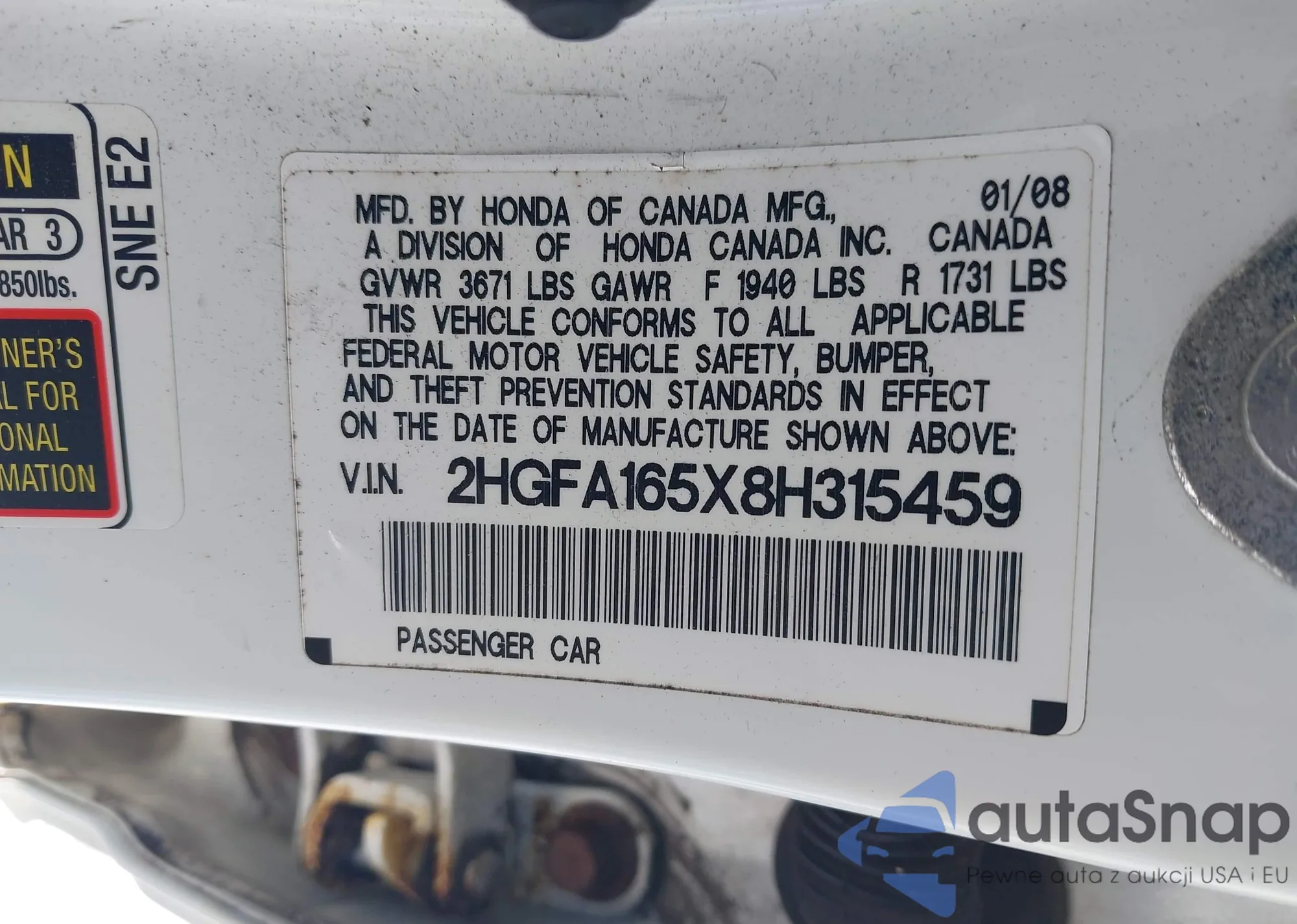 VIN: 2HGFA165X8H315459