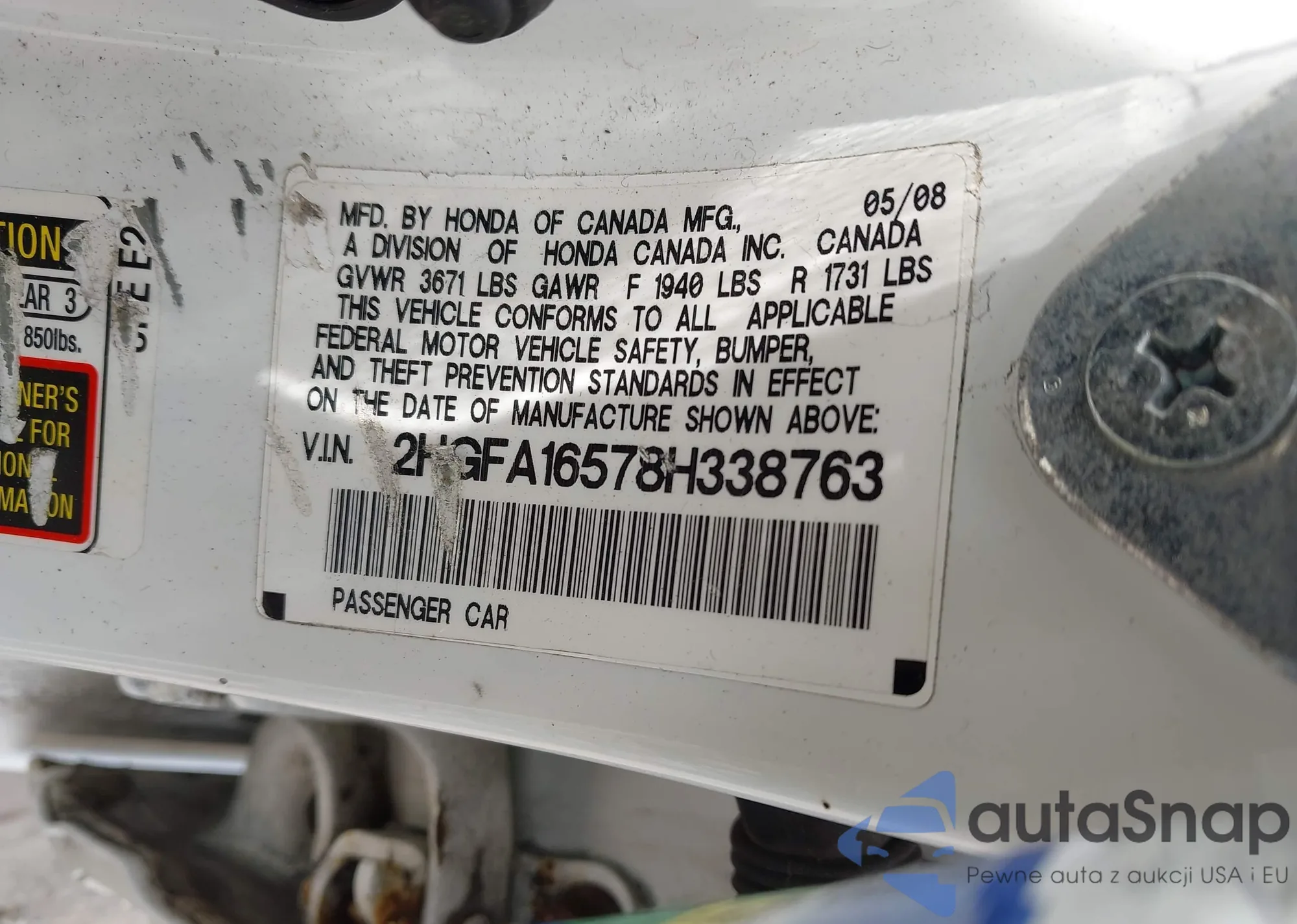 VIN: 2HGFA16578H338763