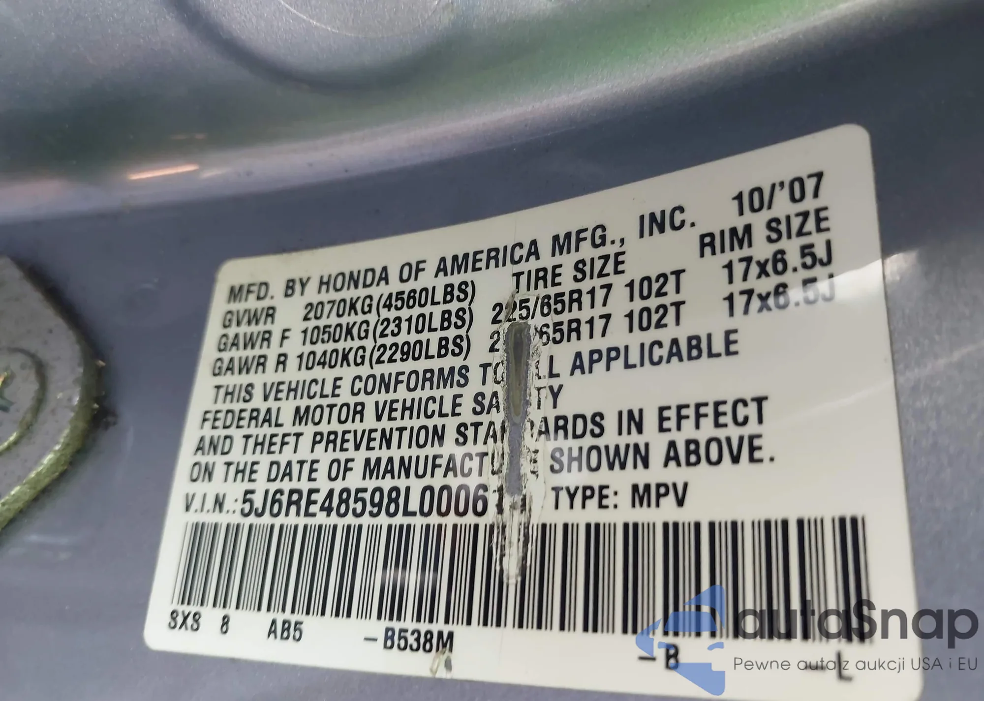 VIN: 5J6RE48598L000616
