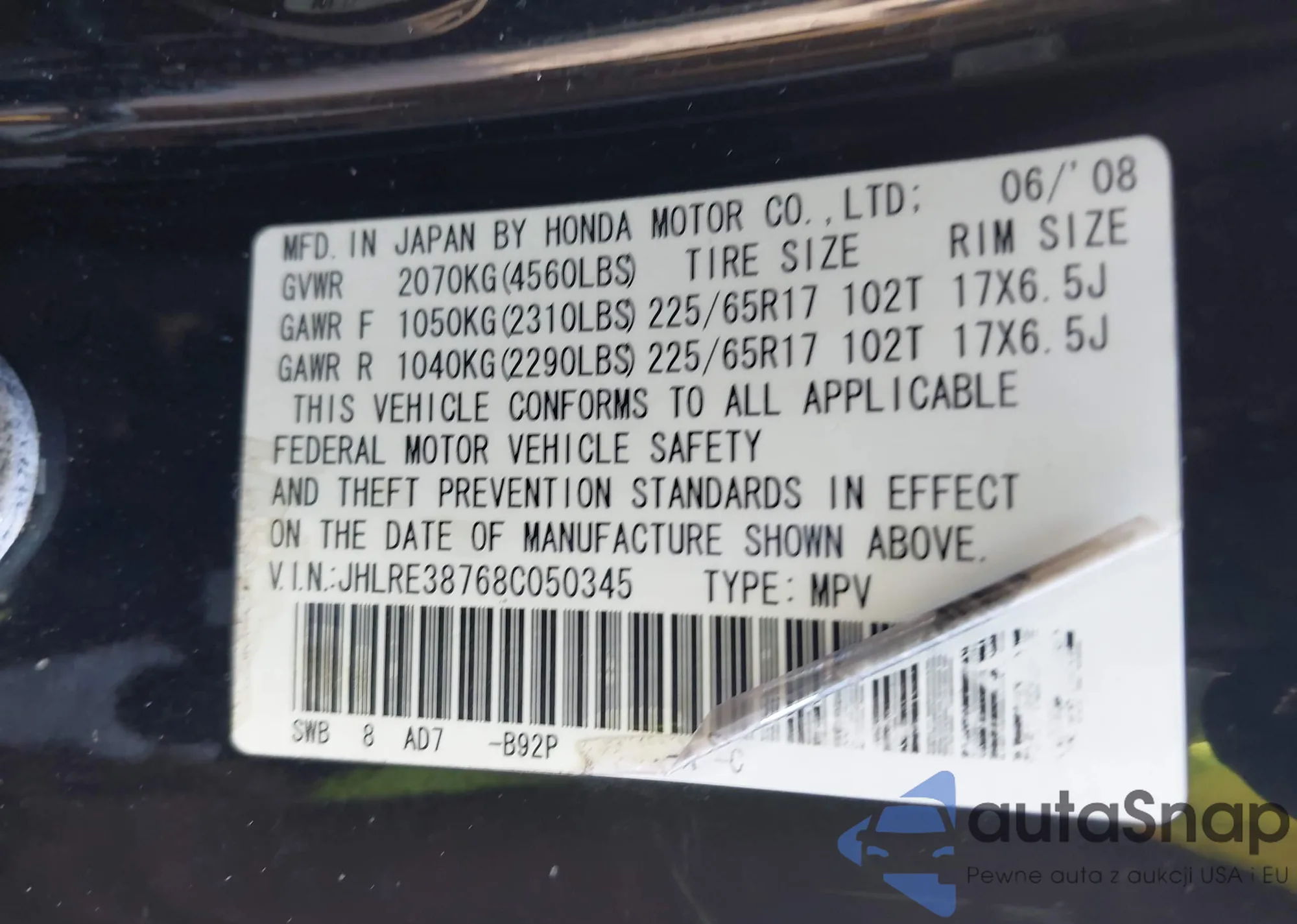VIN: JHLRE38768C050345