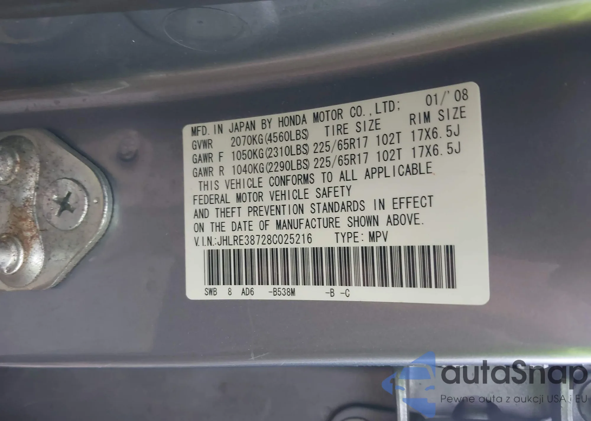 VIN: JHLRE38728C025216