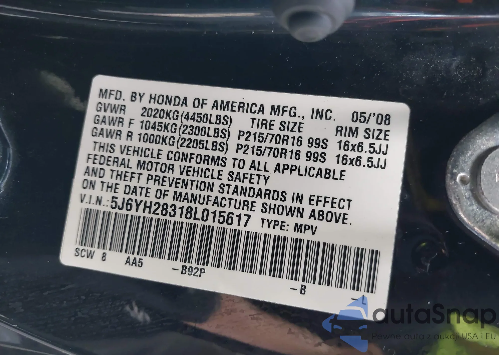 VIN: 5J6YH28318L015617