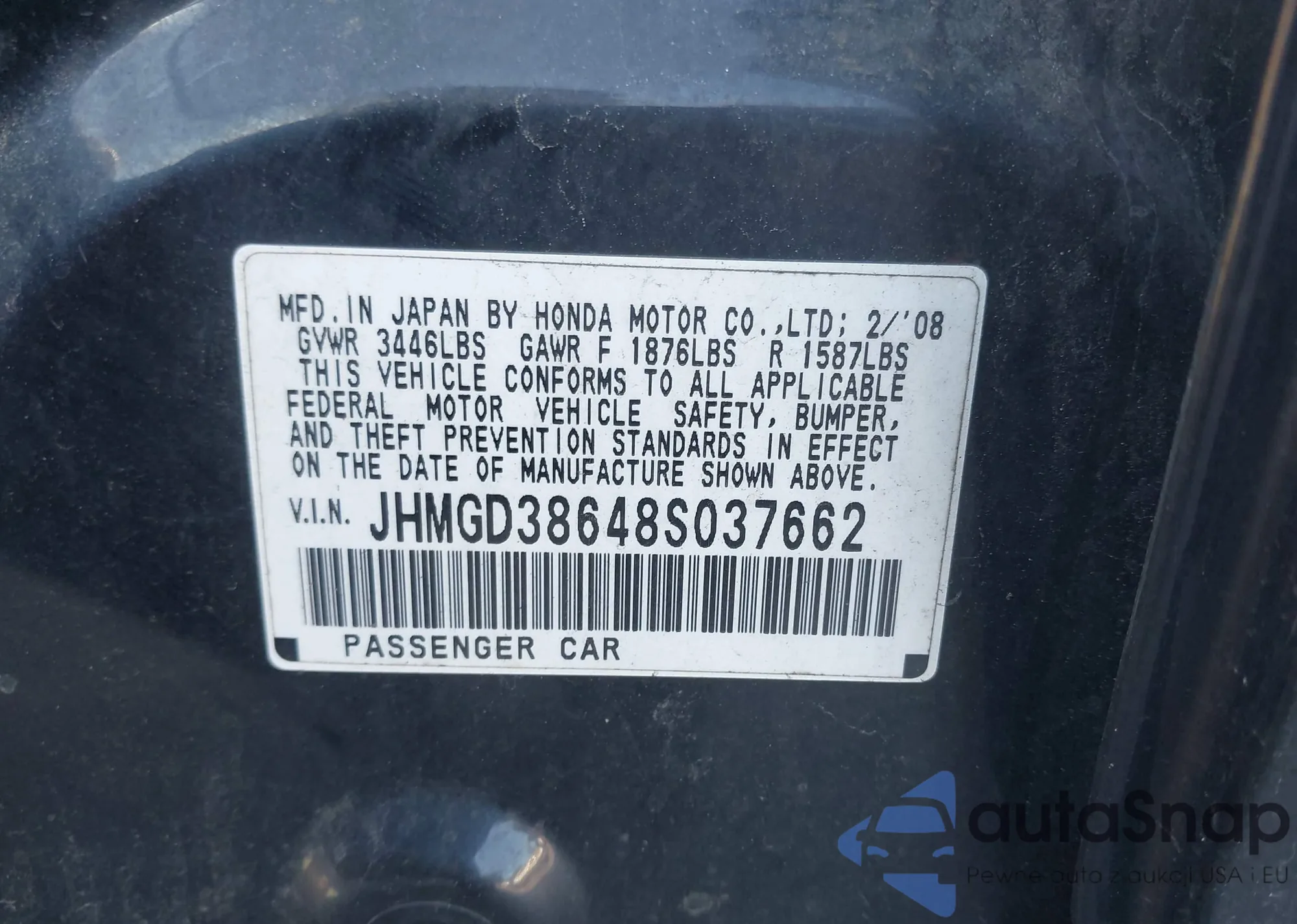 VIN: JHMGD38648S037662