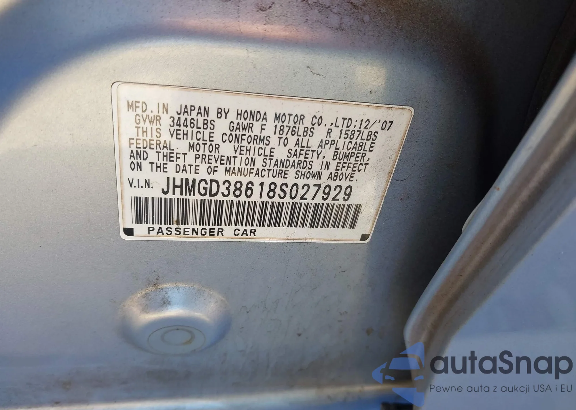 The car Honda Fit 2008 (VIN JHMGD38618S027929) has not been auctioned before. The documents are clean, and the mileage matches or is below the market average. Sold by an insurance company – we recommend purchase. Delivery to the port will take approx. 6–8 weeks.