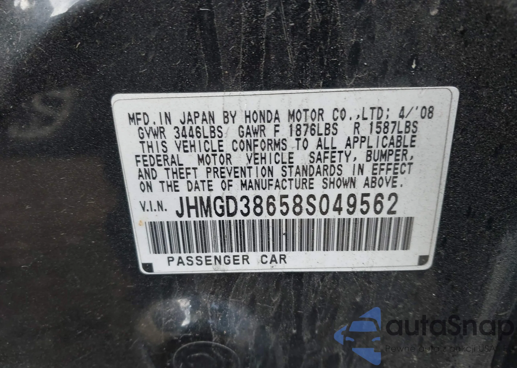 VIN: JHMGD38658S049562