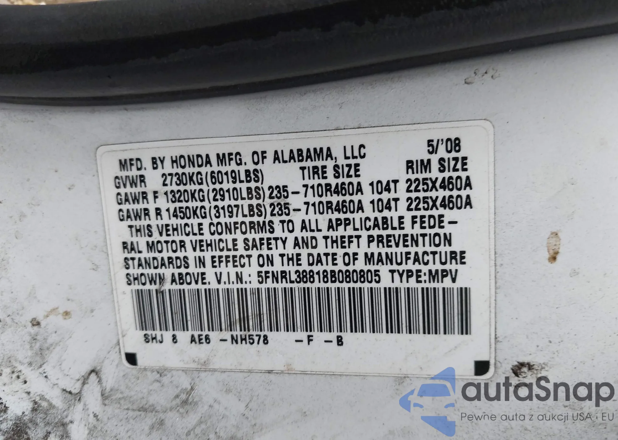 VIN: 5FNRL38818B080805
