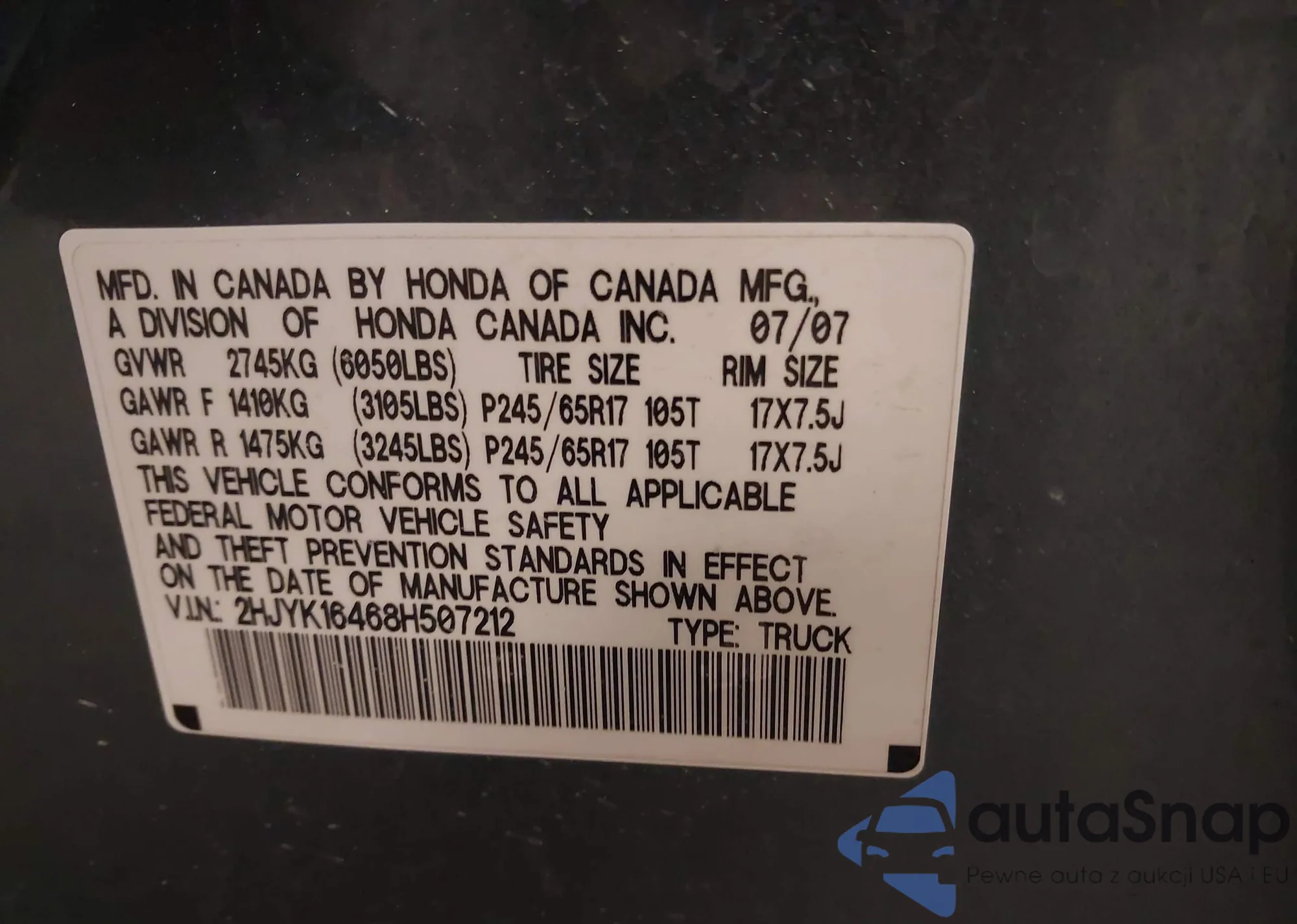 VIN: 2HJYK16468H507212