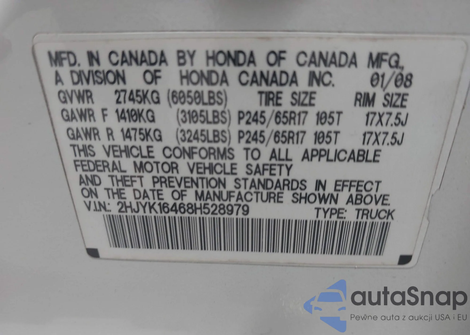 VIN: 2HJYK16468H528979