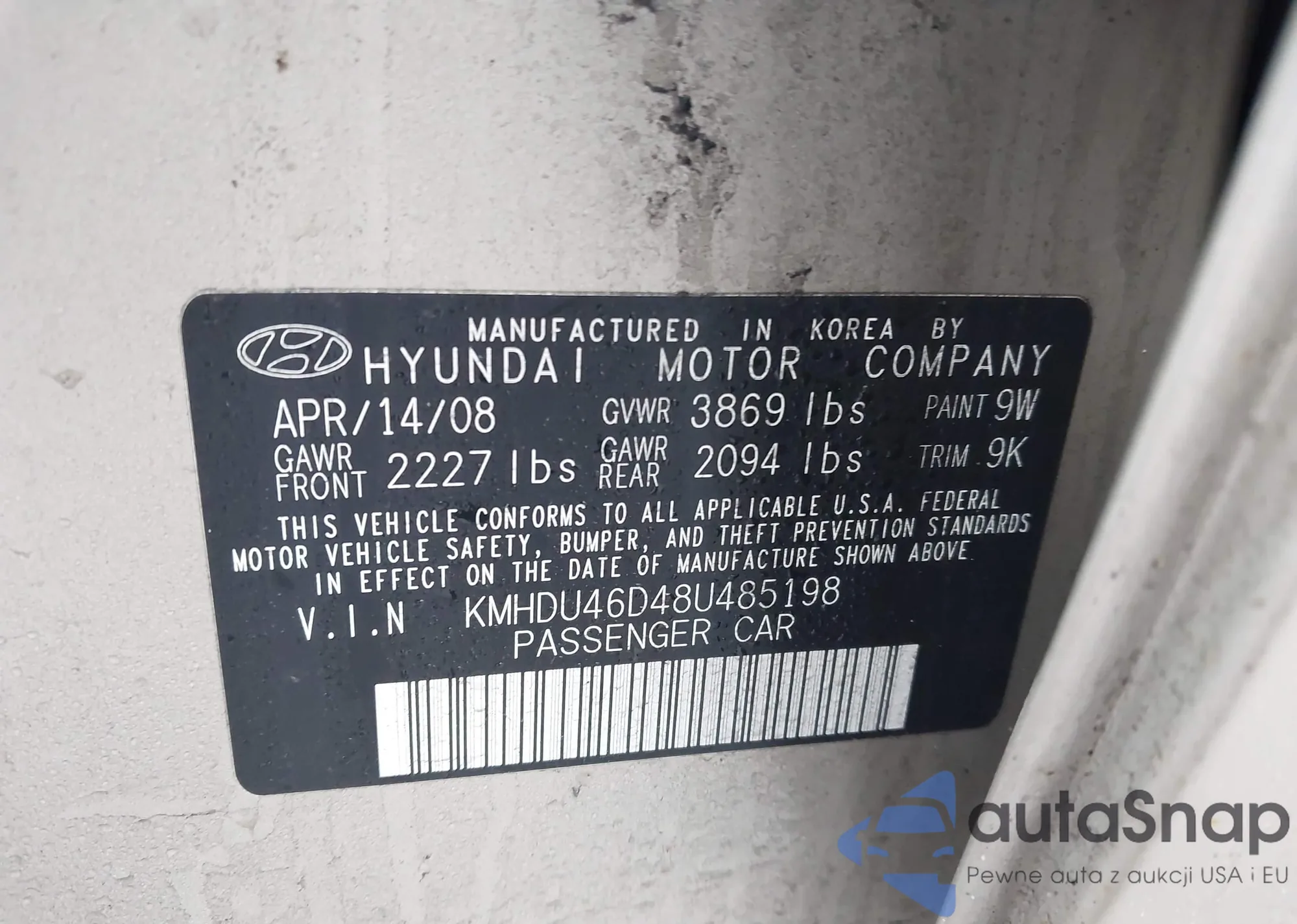 The car Hyundai Elantra 2008 (VIN KMHDU46D48U485198) is sold by an unverified seller. We recommend checking the Carfax report and confirming registration possibilities before purchase.