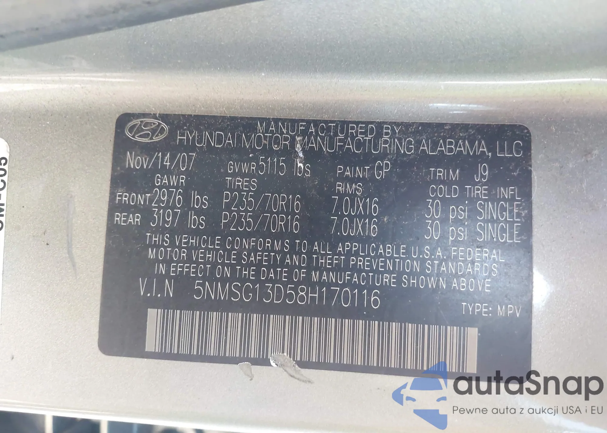 VIN: 5NMSG13D58H170116