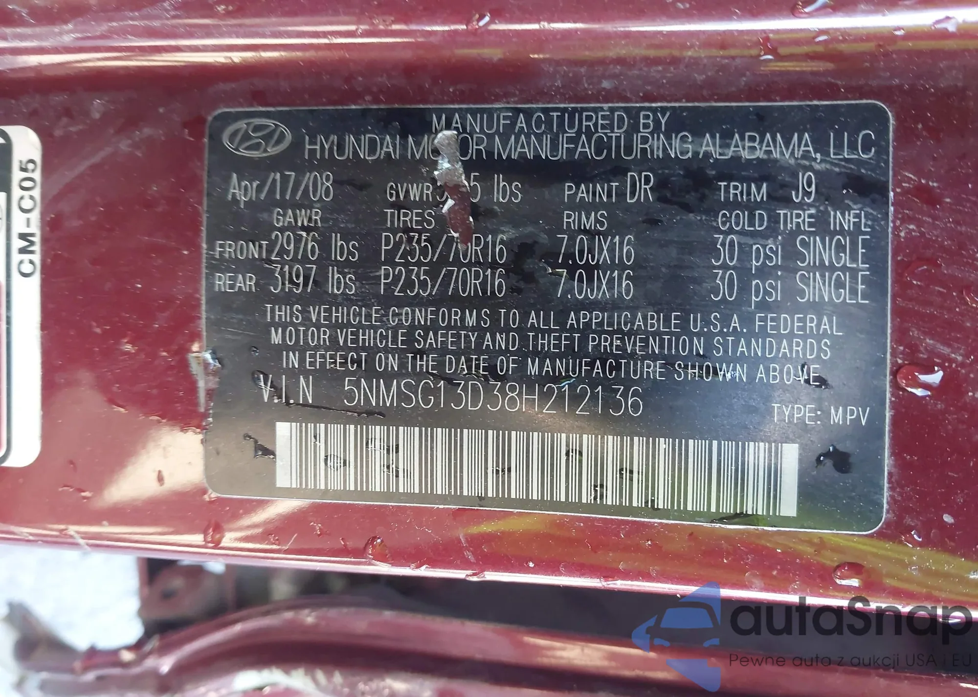 VIN: 5NMSG13D38H212136