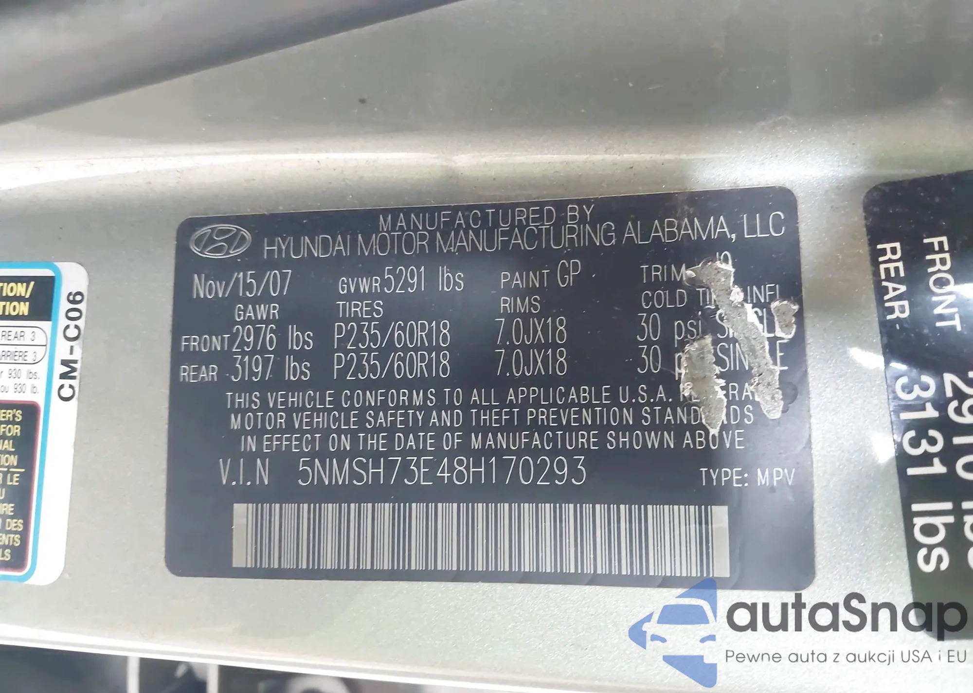 VIN: 5NMSH73E48H170293
