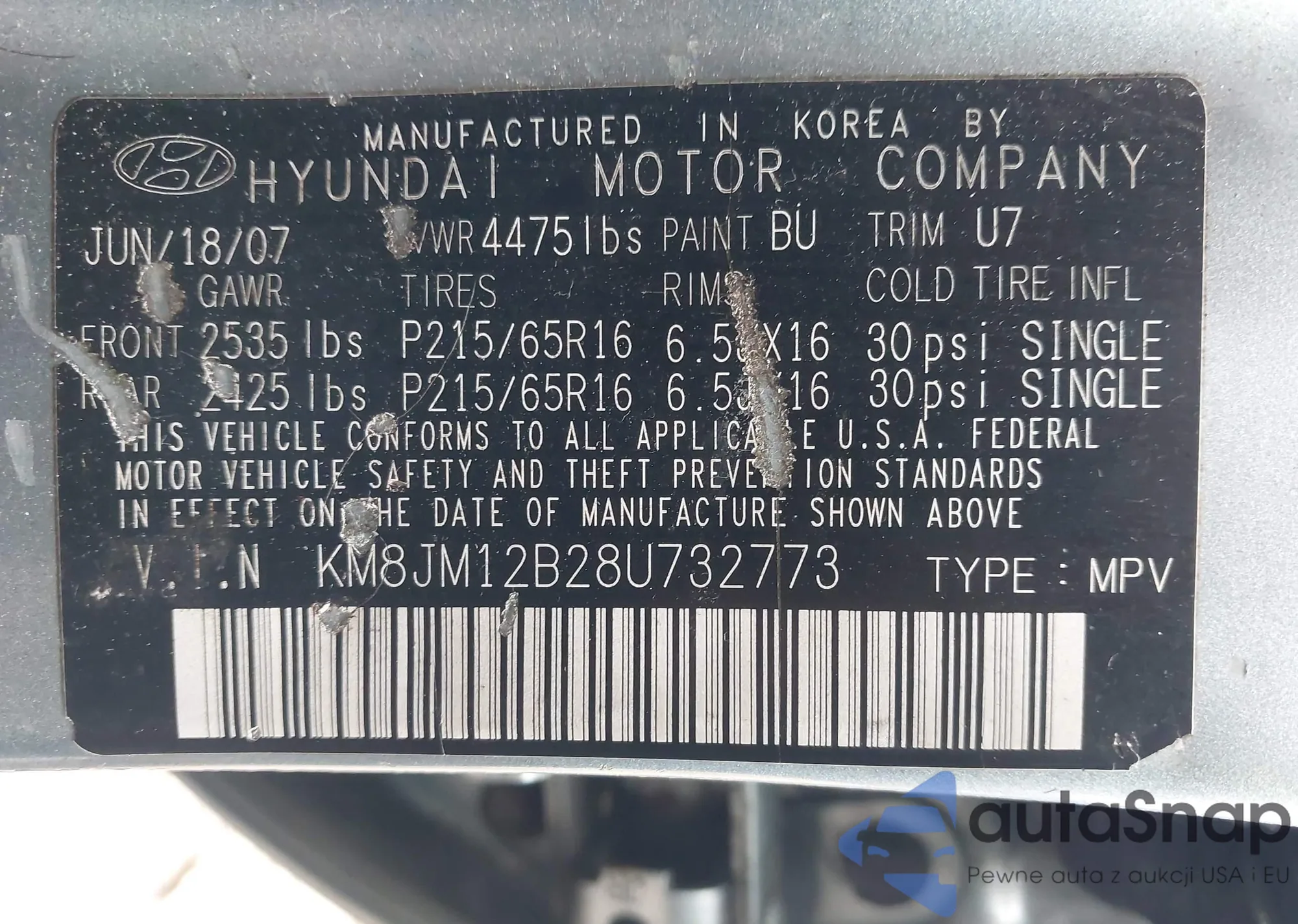 The car Hyundai Tucson 2008 (VIN KM8JM12B28U732773) is sold by an unverified seller. We recommend checking the Carfax report and confirming registration possibilities before purchase.