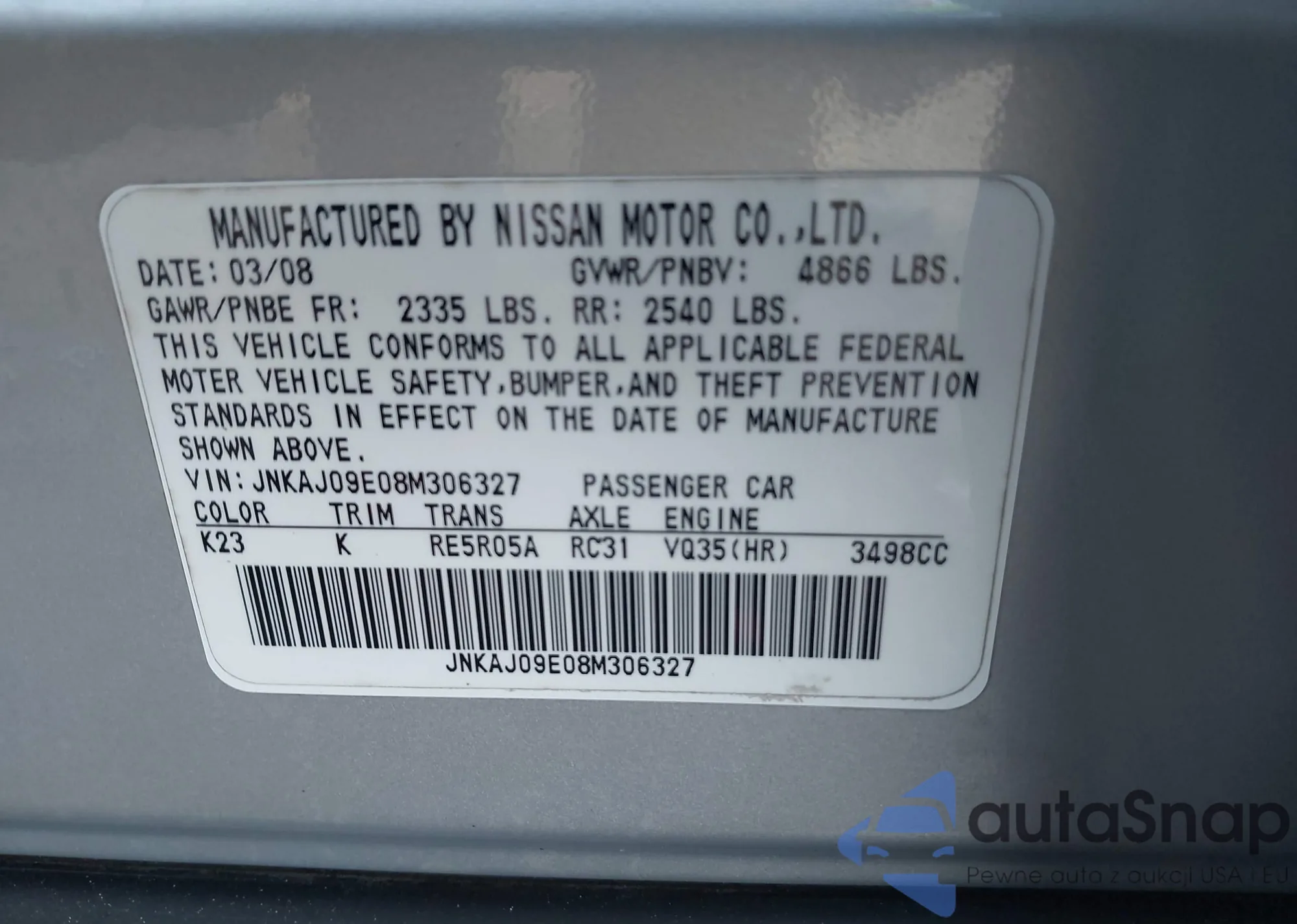 VIN: JNKAJ09E08M306327