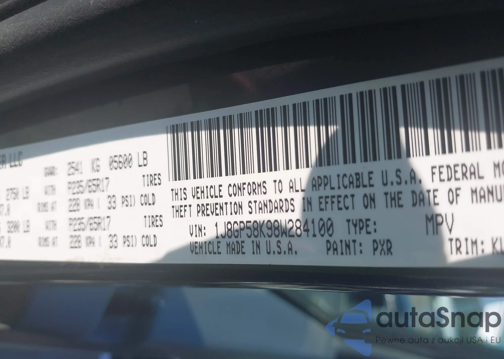 VIN: 1J8GP58K98W284100