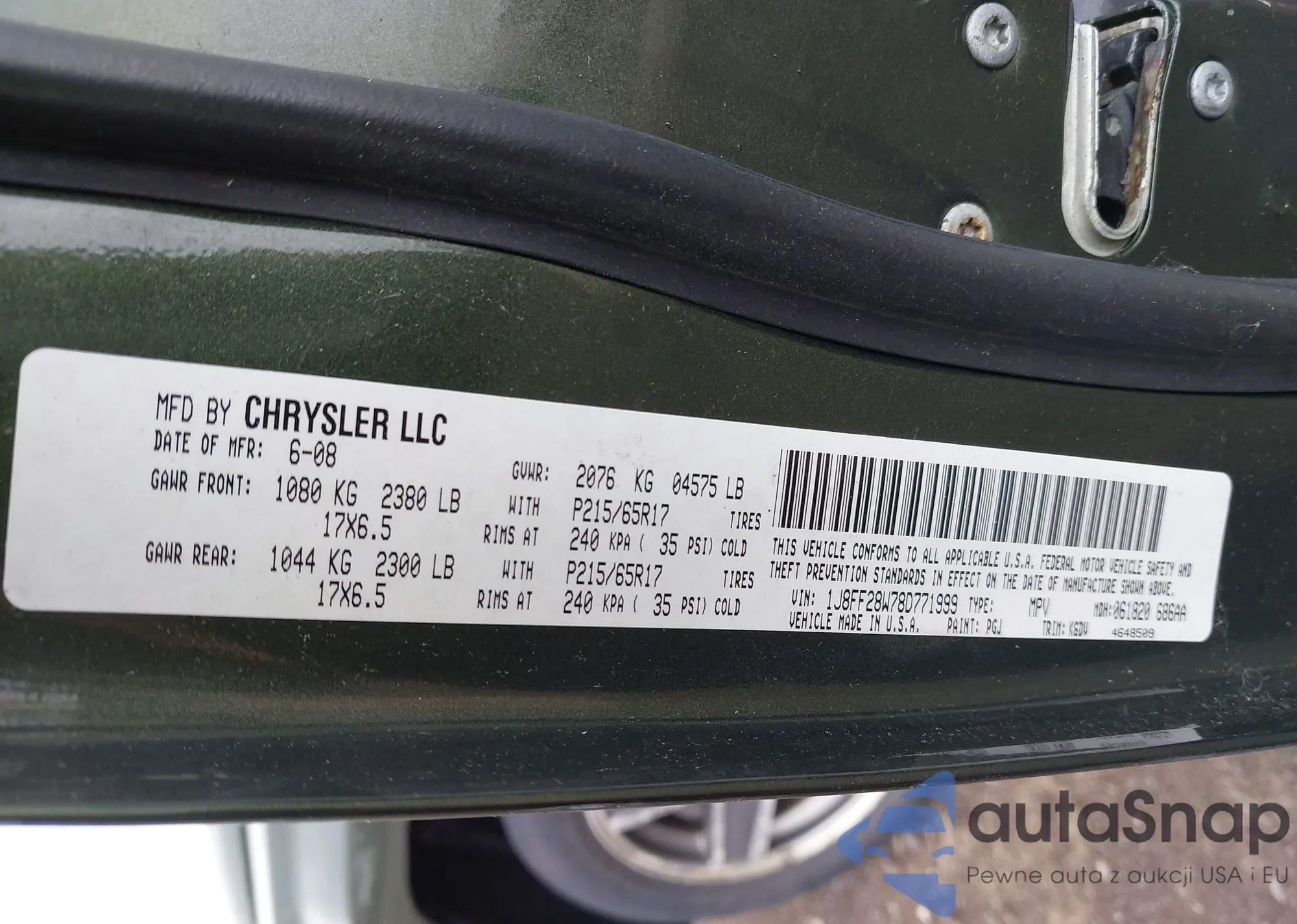 VIN: 1J8FF28W78D771999