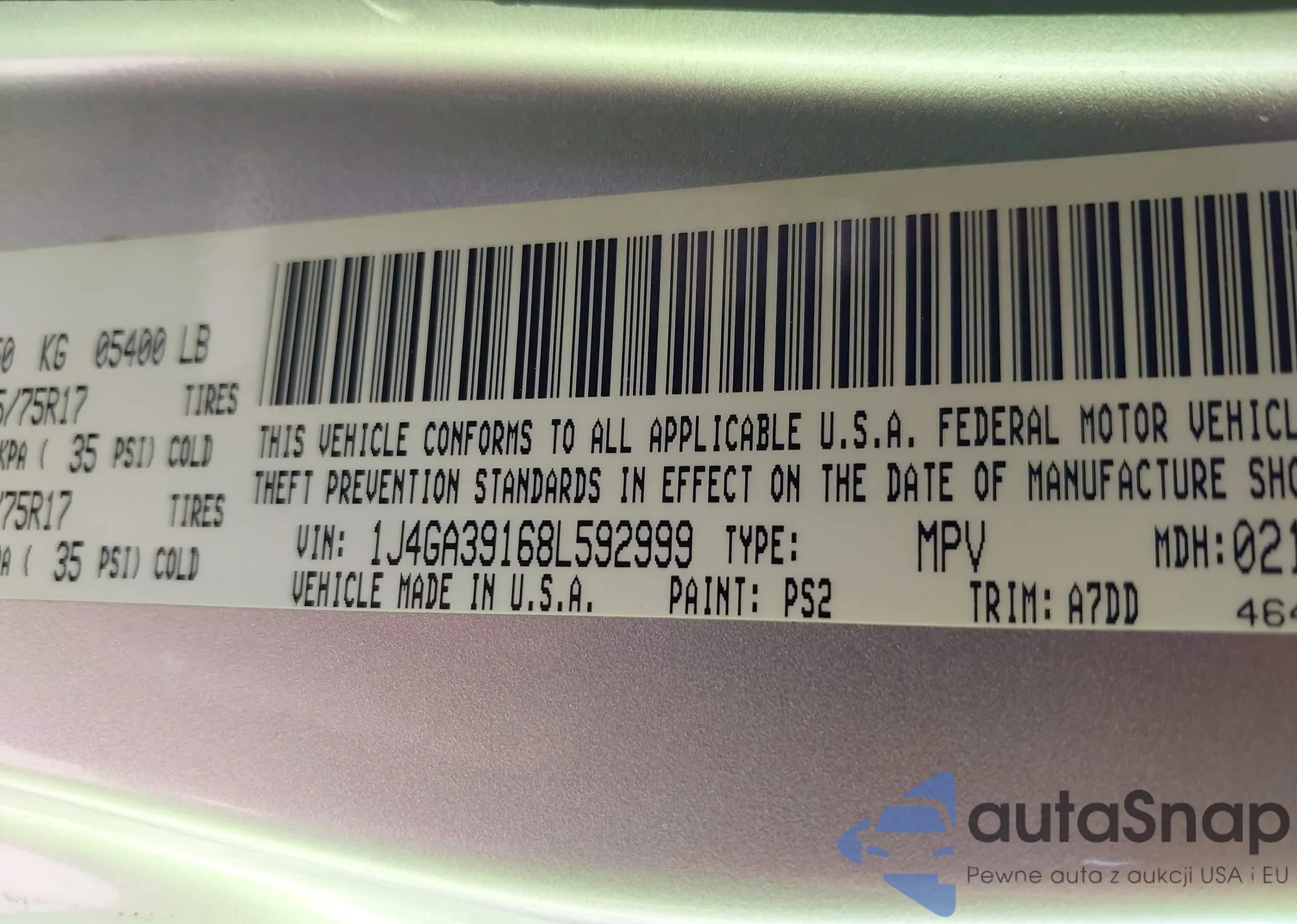 VIN: 1J4GA39168L592999