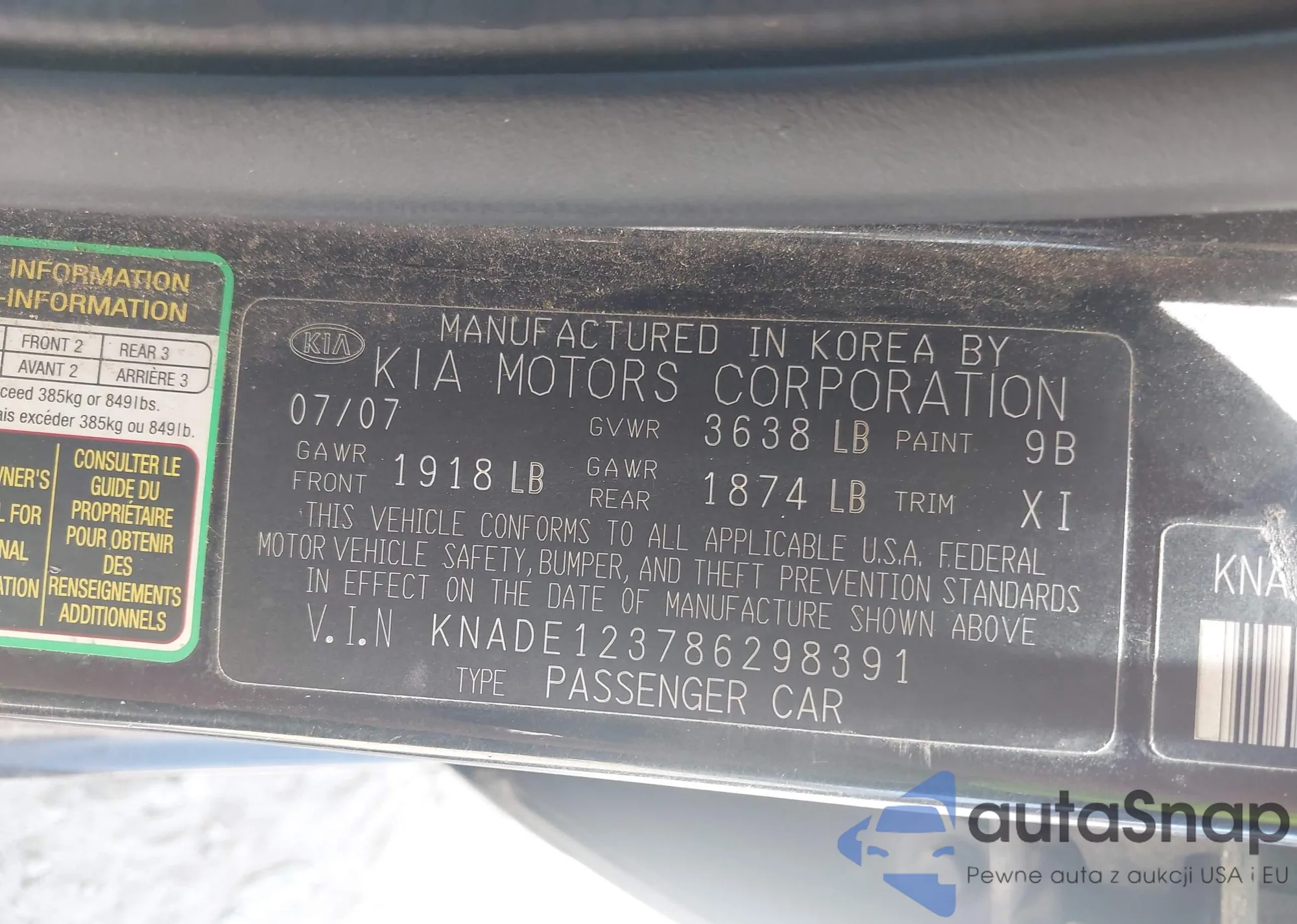 VIN: KNADE123786298391