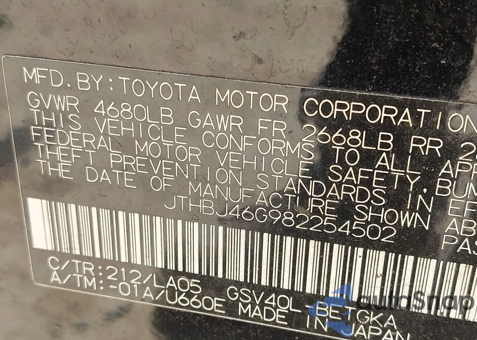VIN: JTHBJ46G982254502