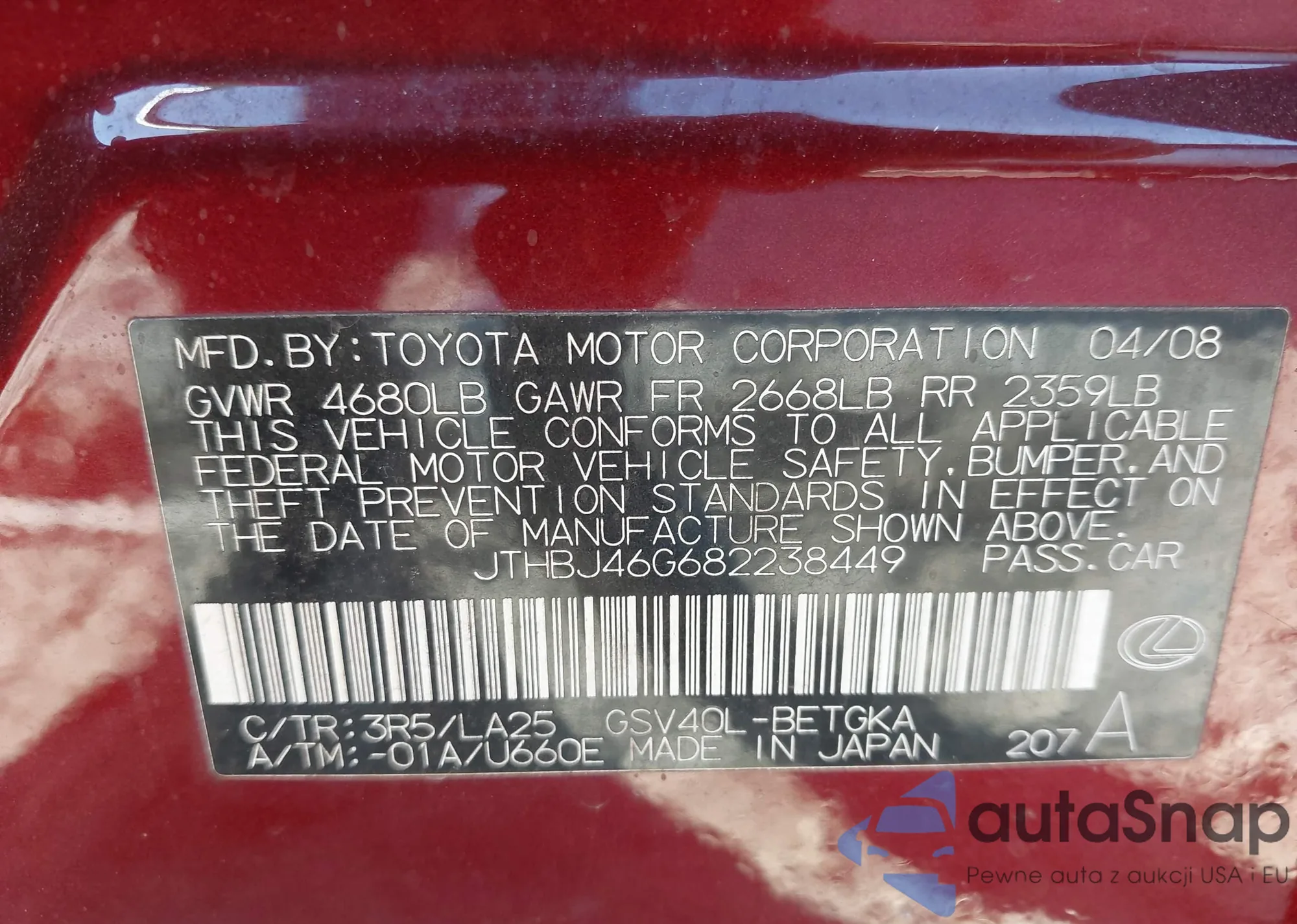 VIN: JTHBJ46G682238449