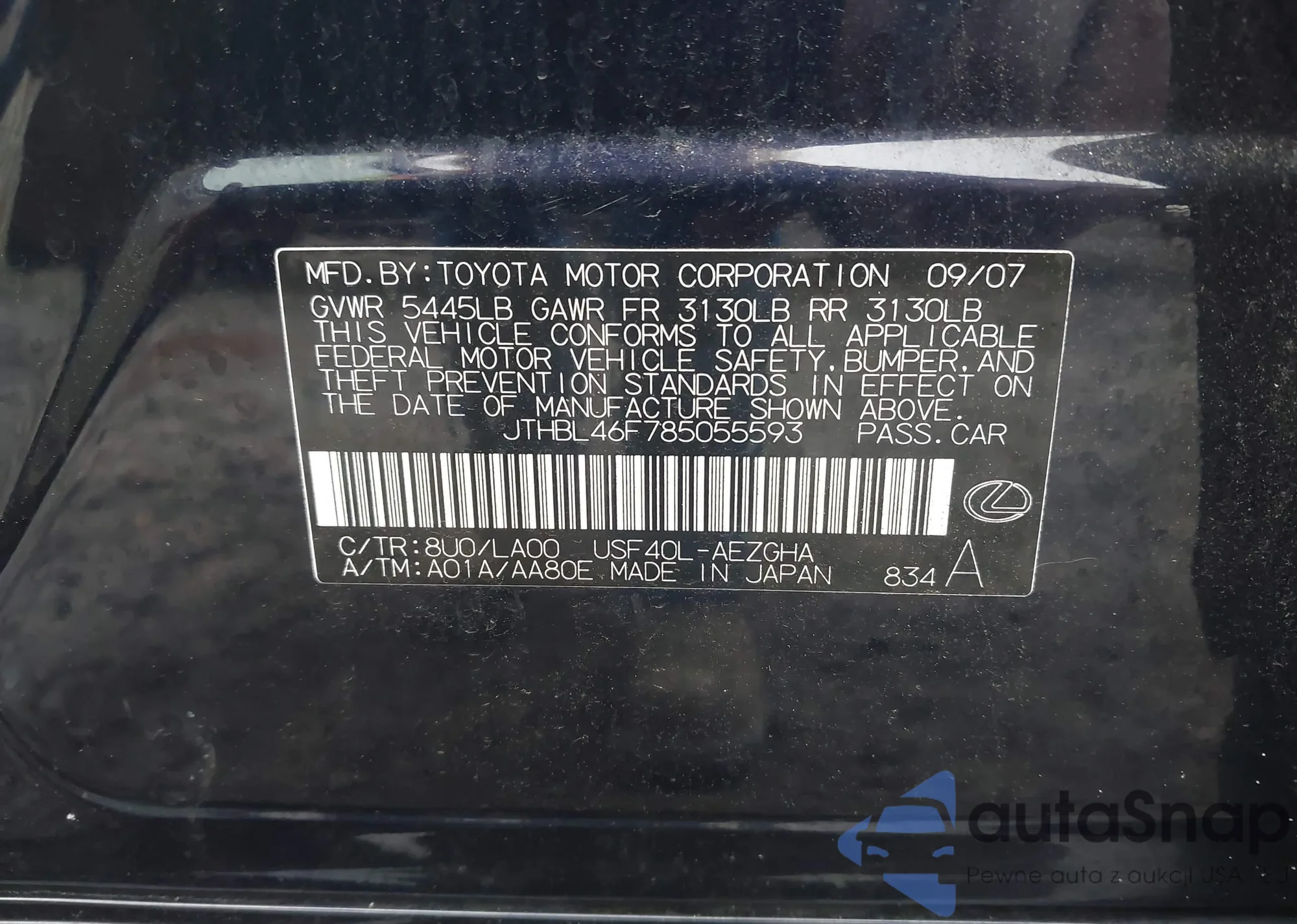 VIN: JTHBL46F785055593