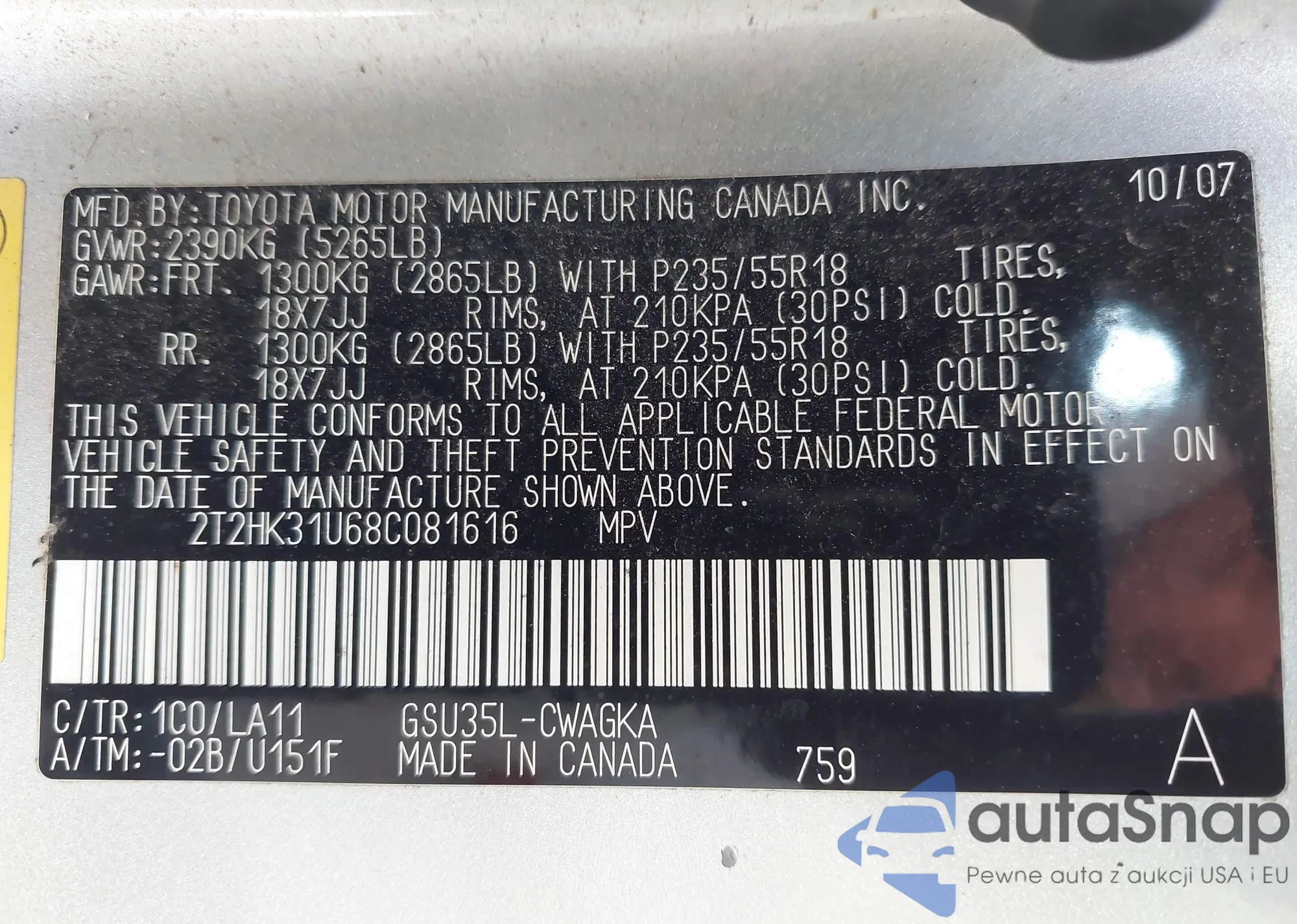 VIN: 2T2HK31U68C081616
