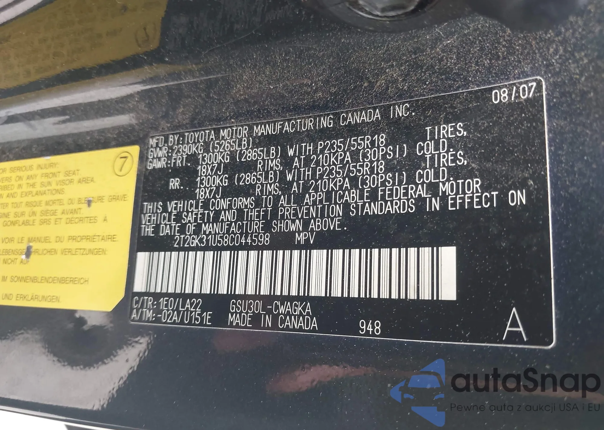 VIN: 2T2GK31U58C044598