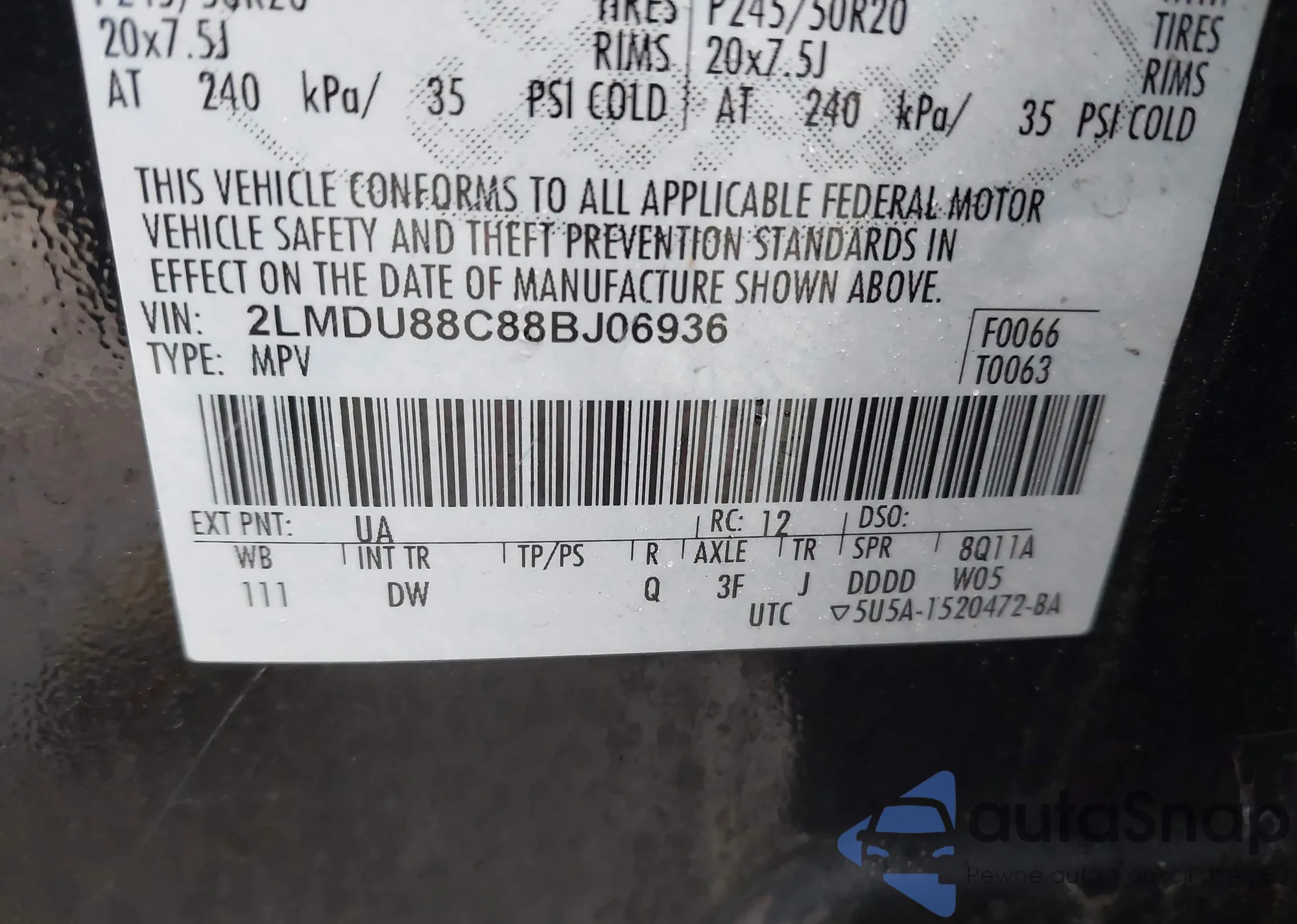The car Lincoln MKX 2008 (VIN 2LMDU88C88BJ06936) has not been auctioned before. The documents are clean, and the mileage matches or is below the market average. Sold by an insurance company – we recommend purchase. Delivery to the port will take approx. 6–8 weeks.