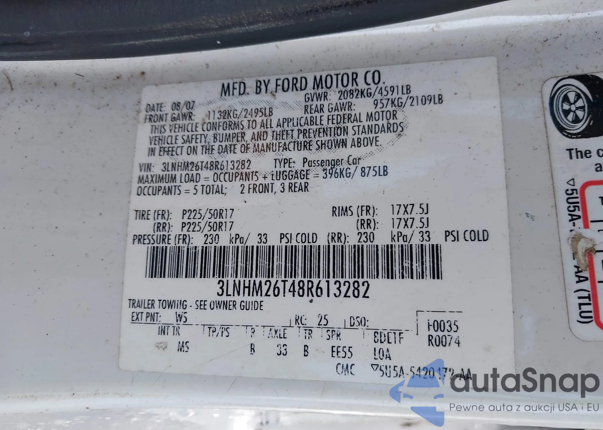 The car Lincoln MKZ 2008 (VIN 3LNHM26T48R613282) is sold by an unverified seller. We recommend checking the Carfax report and confirming registration possibilities before purchase.