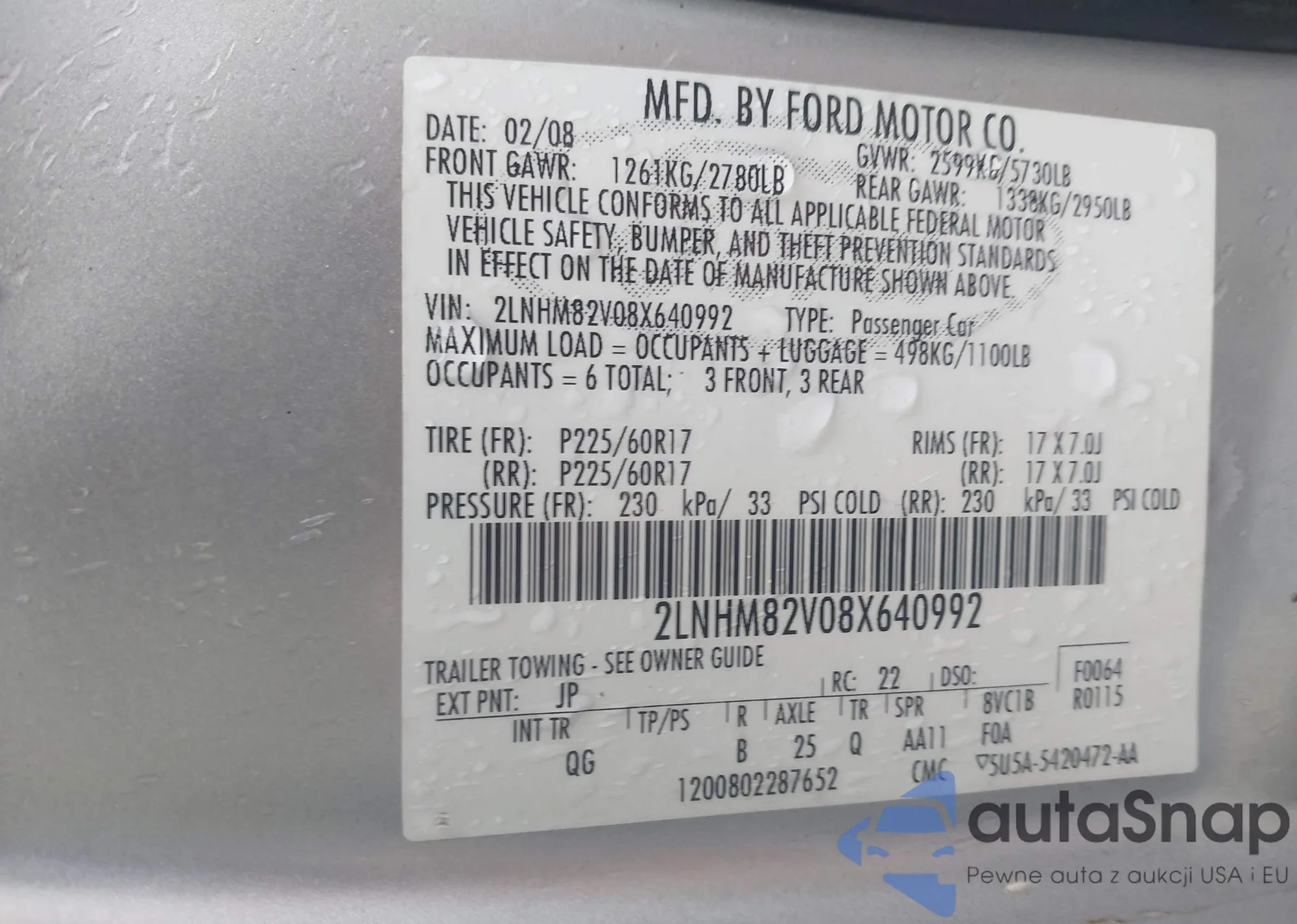 VIN: 2LNHM82V08X640992