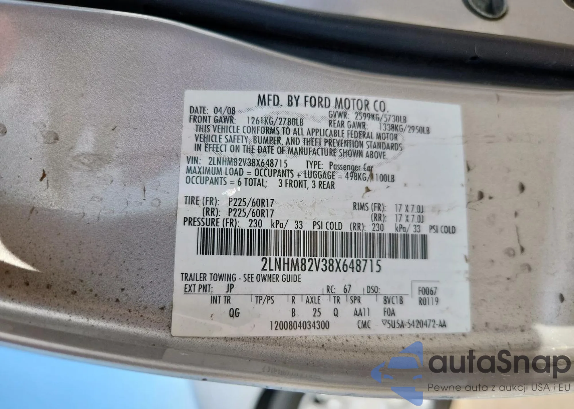 VIN: 2LNHM82V38X648715