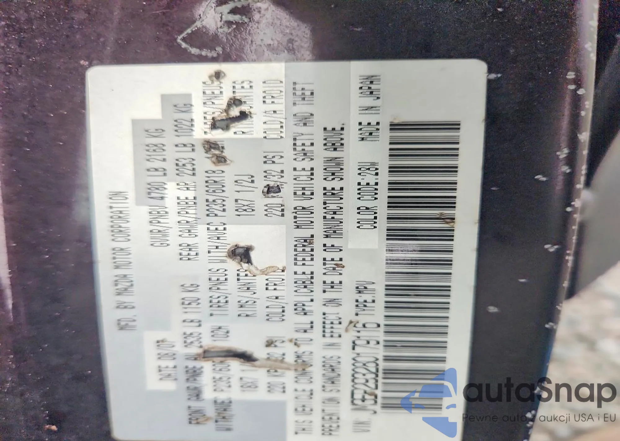 The car Mazda CX-7 2008 (VIN JM3ER293280179116) has not been auctioned before. The documents are clean, and the mileage matches or is below the market average. Sold by an insurance company – we recommend purchase. Delivery to the port will take approx. 6–8 weeks.