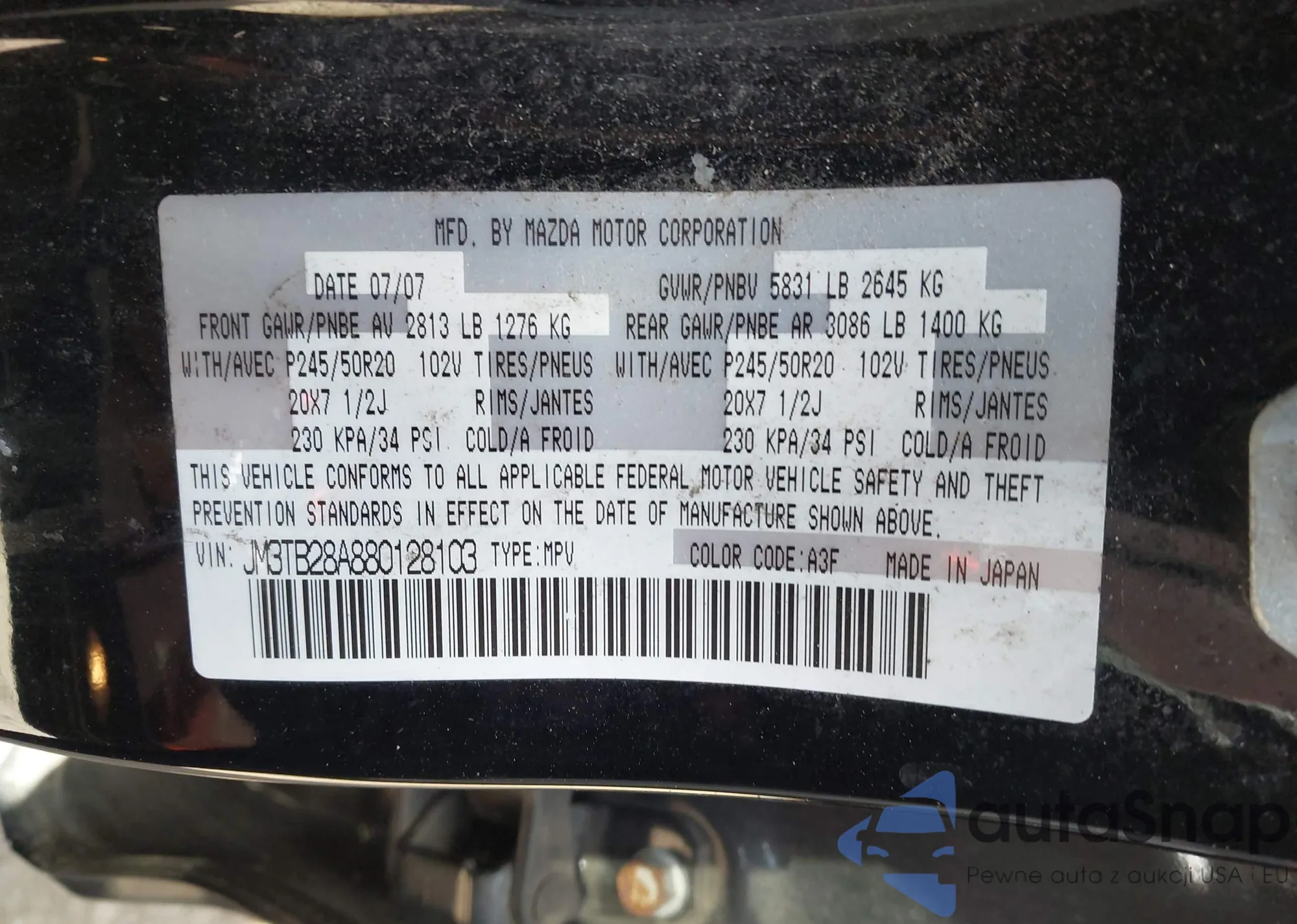 The car Mazda CX-9 2008 (VIN JM3TB28A880128103) has not been auctioned before. The documents are clean, and the mileage matches or is below the market average. Sold by an insurance company – we recommend purchase. Delivery to the port will take approx. 6–8 weeks.