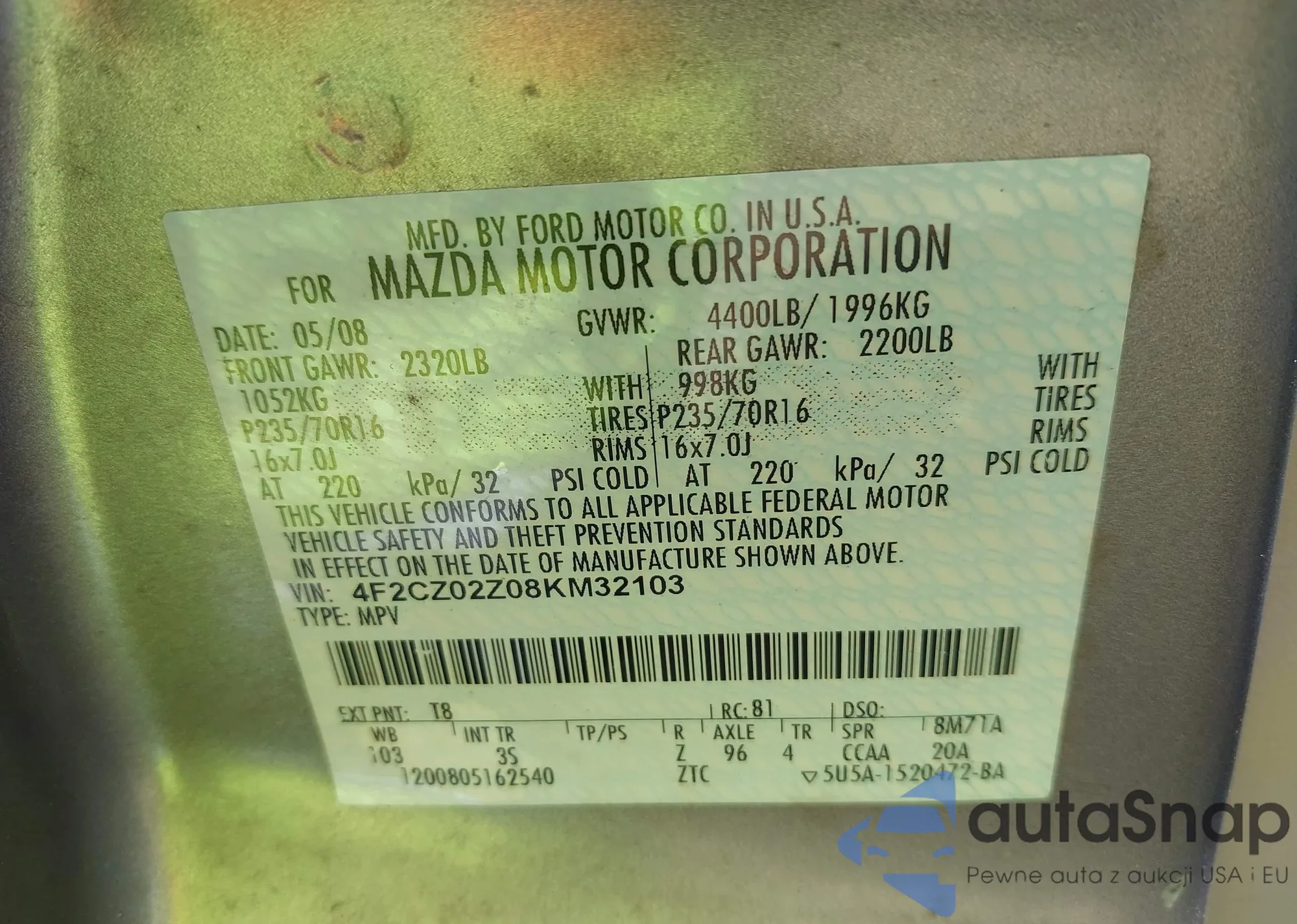 VIN: 4F2CZ02Z08KM32103