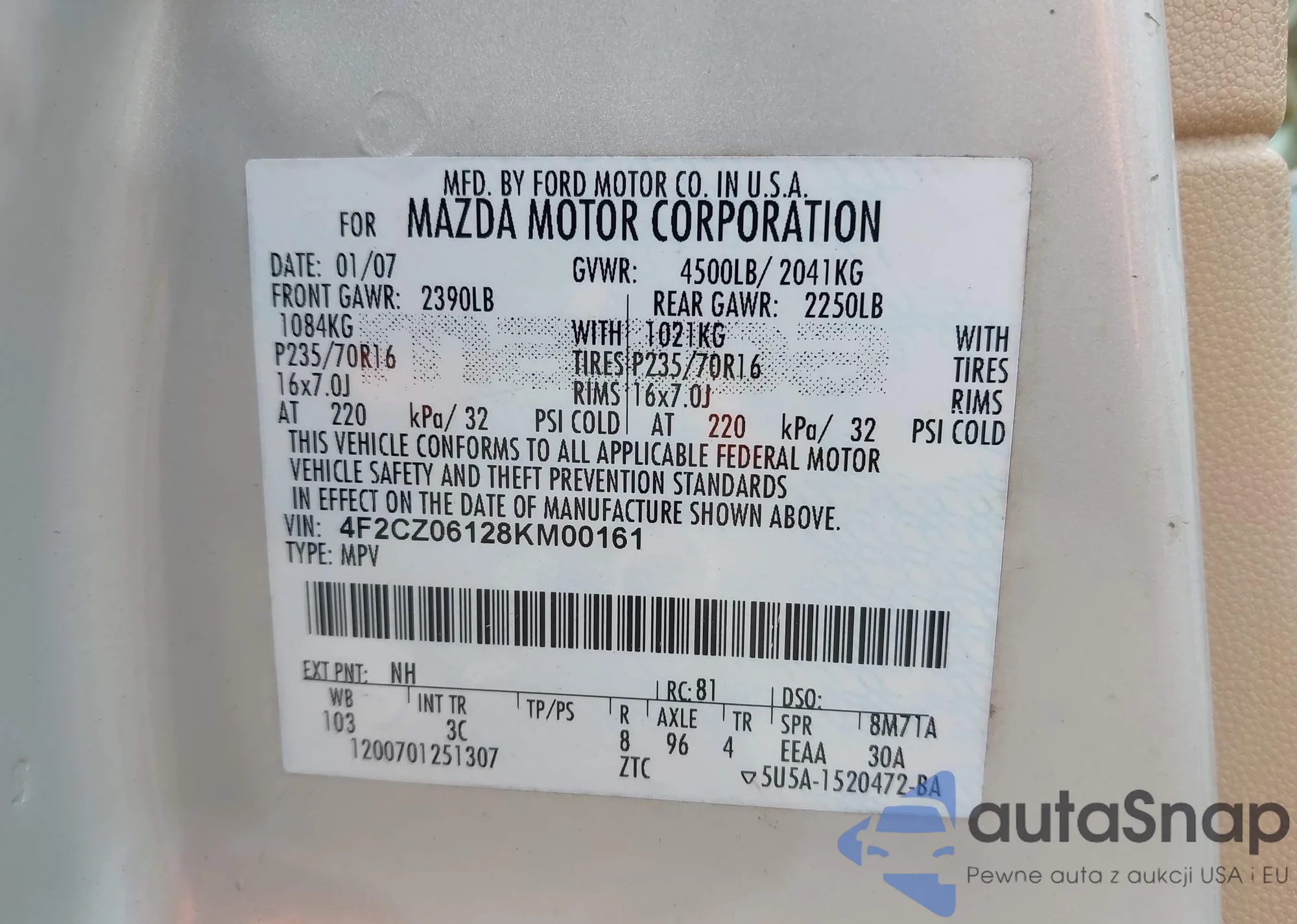 VIN: 4F2CZ06128KM00161
