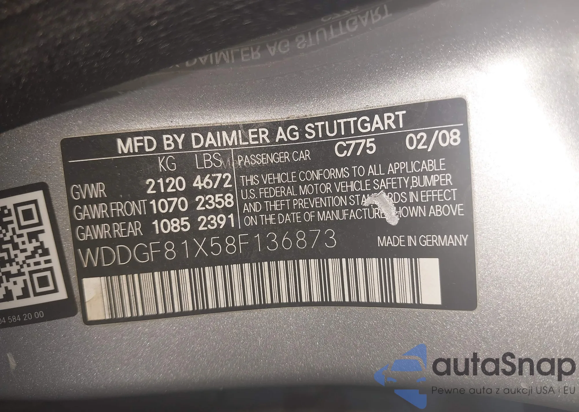 VIN: WDDGF81X58F136873