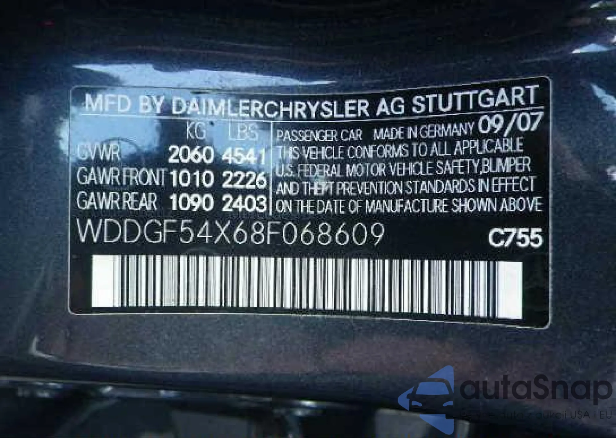 • VIN: WDDGF54X68F068609