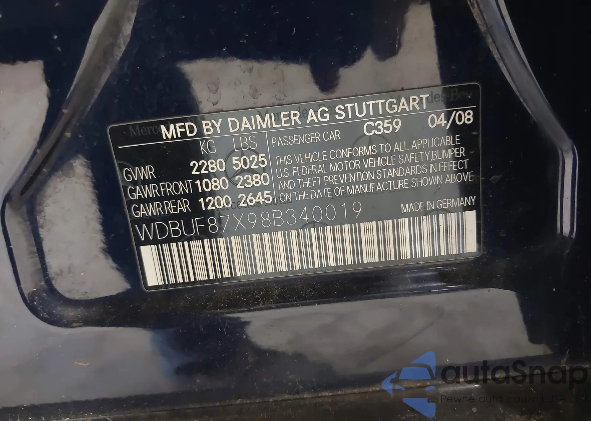 VIN: WDBUF87X98B340019