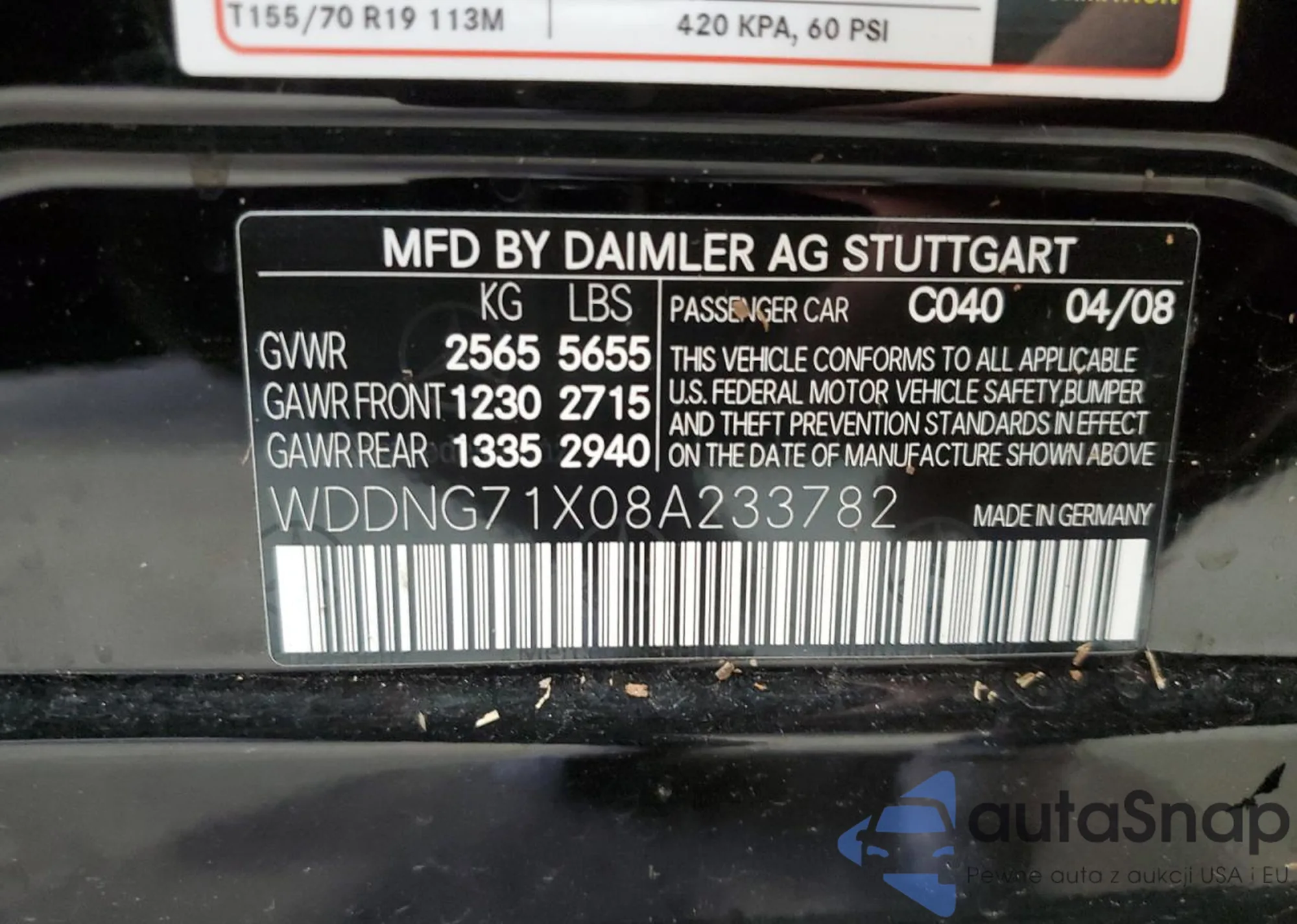 The car Mercedes-Benz CLS-klasse 2008 (VIN WDDNG71X08A233782) is sold by an unverified seller. We recommend checking the Carfax report and confirming registration possibilities before purchase.