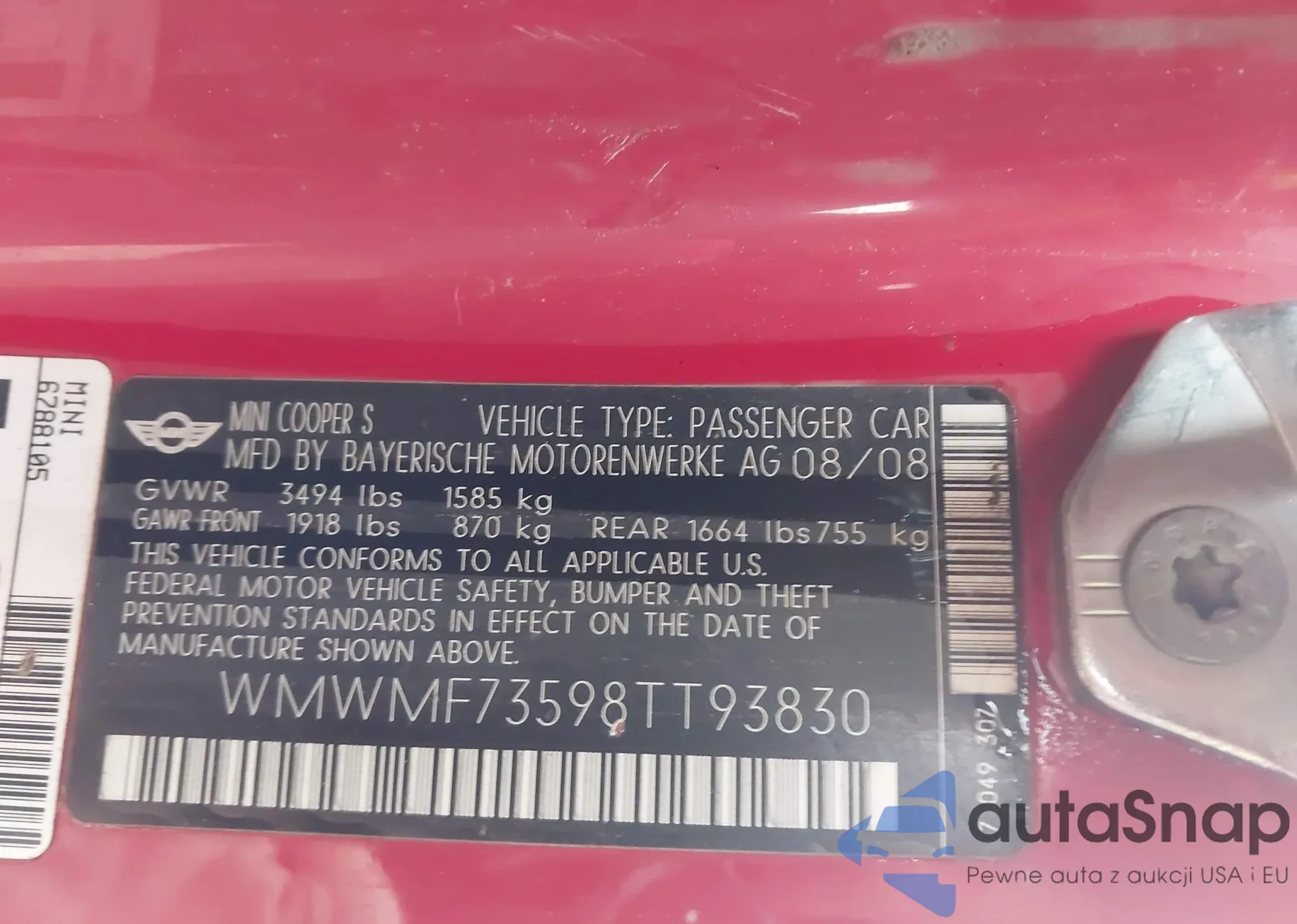 VIN: WMWMF73598TT93830