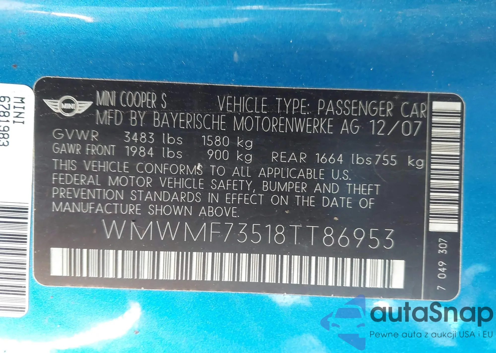 VIN: WMWMF73518TT86953