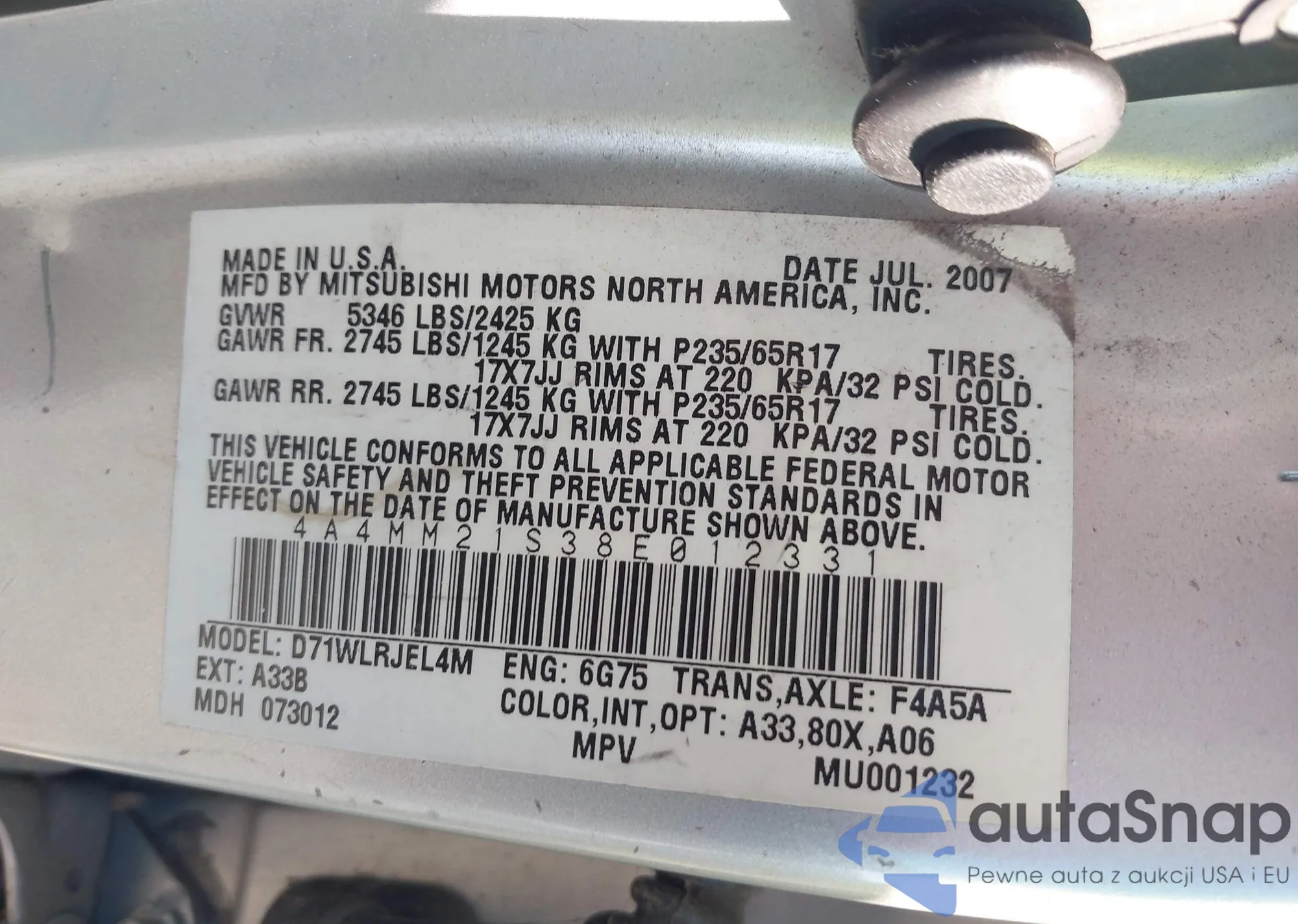 VIN: 4A4MM21S38E012331