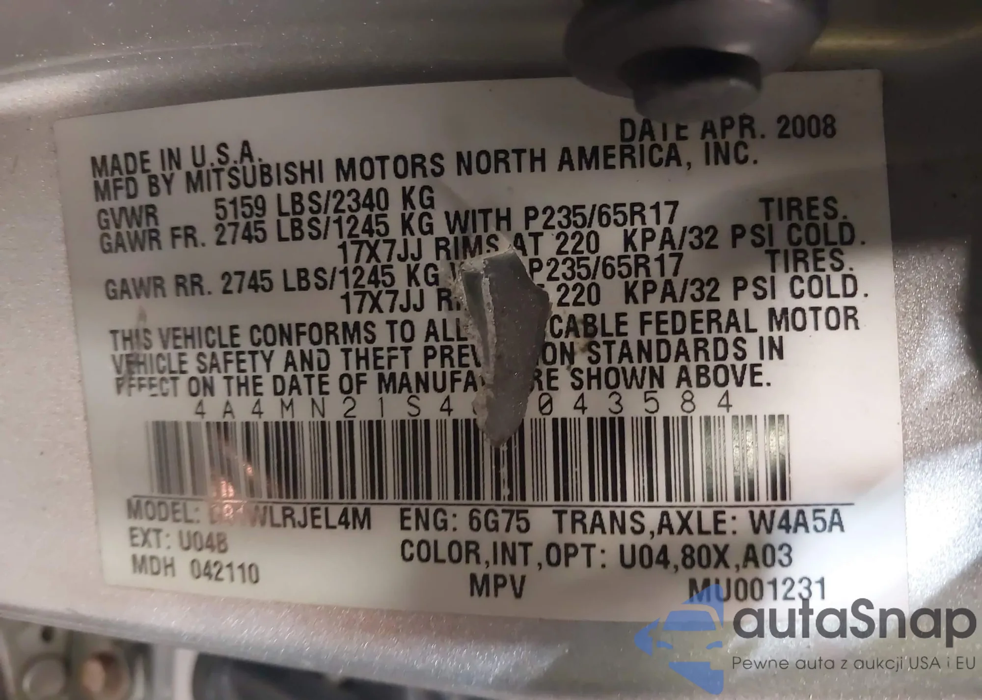 VIN: 4A4MN21S48E043584