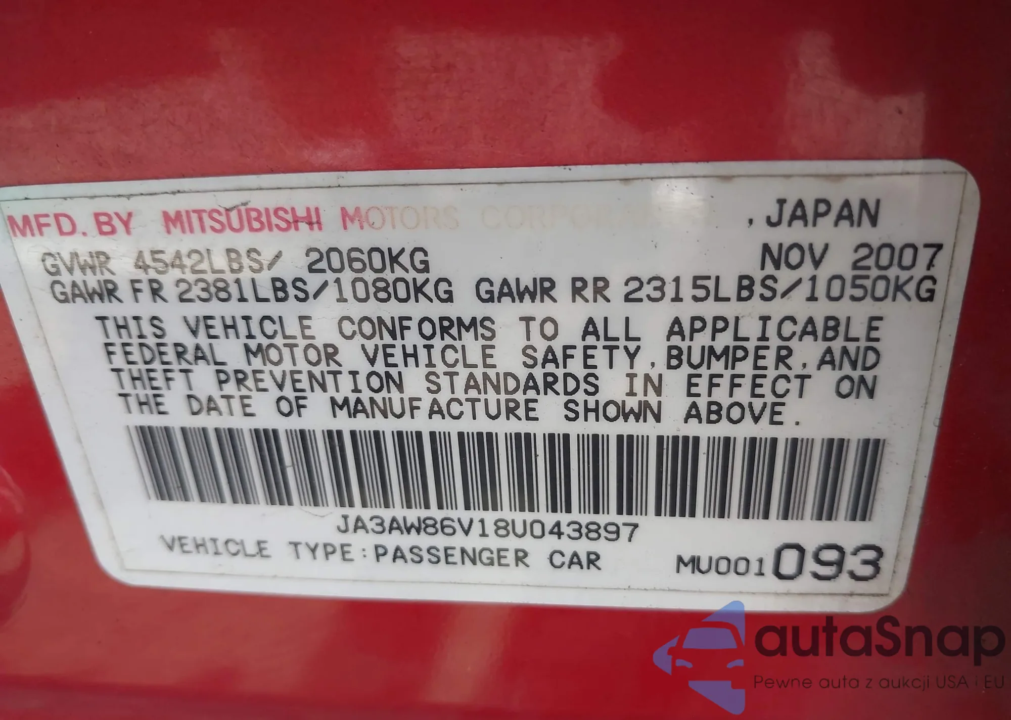 VIN: JA3AW86V18U043897