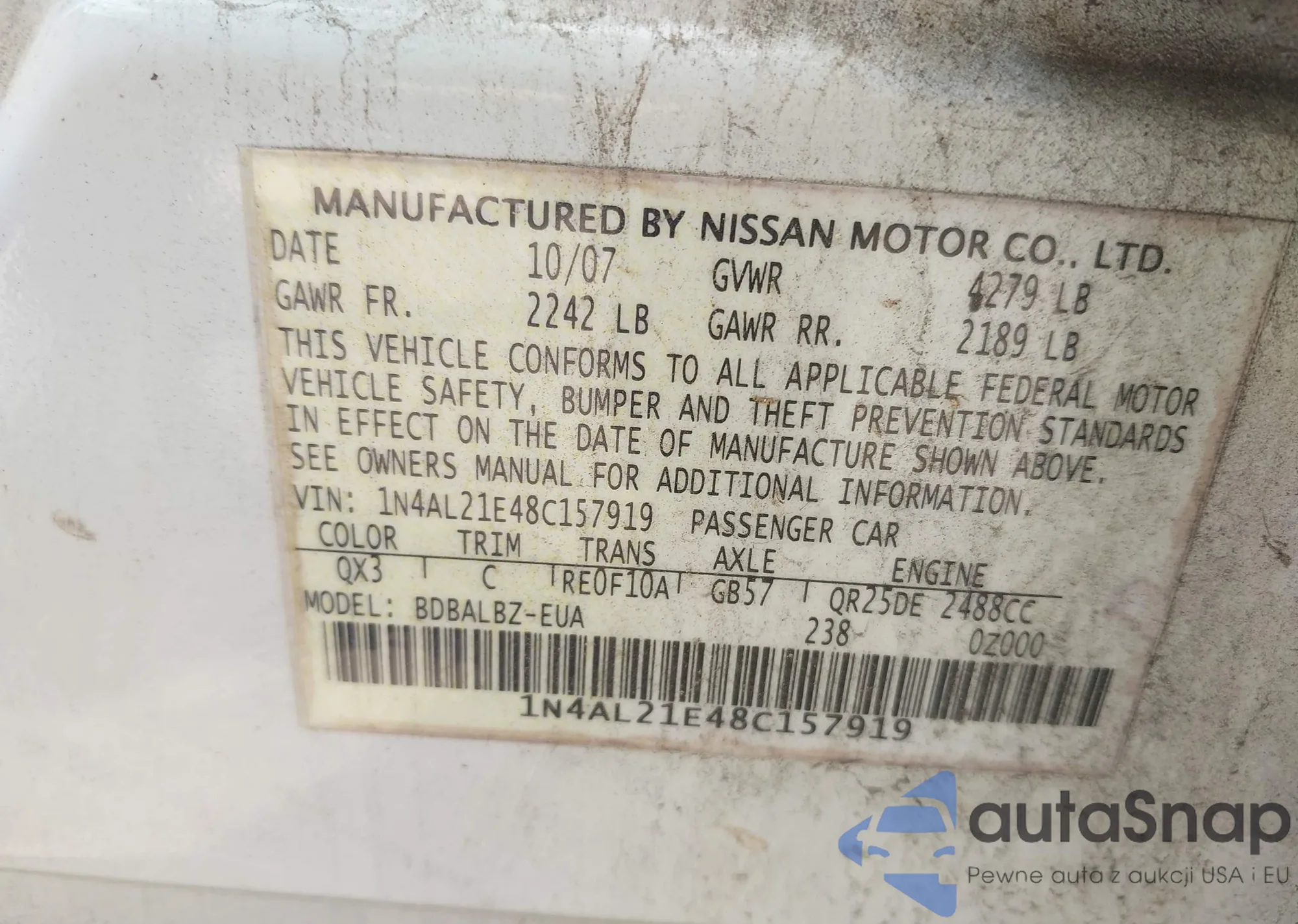 VIN: 1N4AL21E48C157919