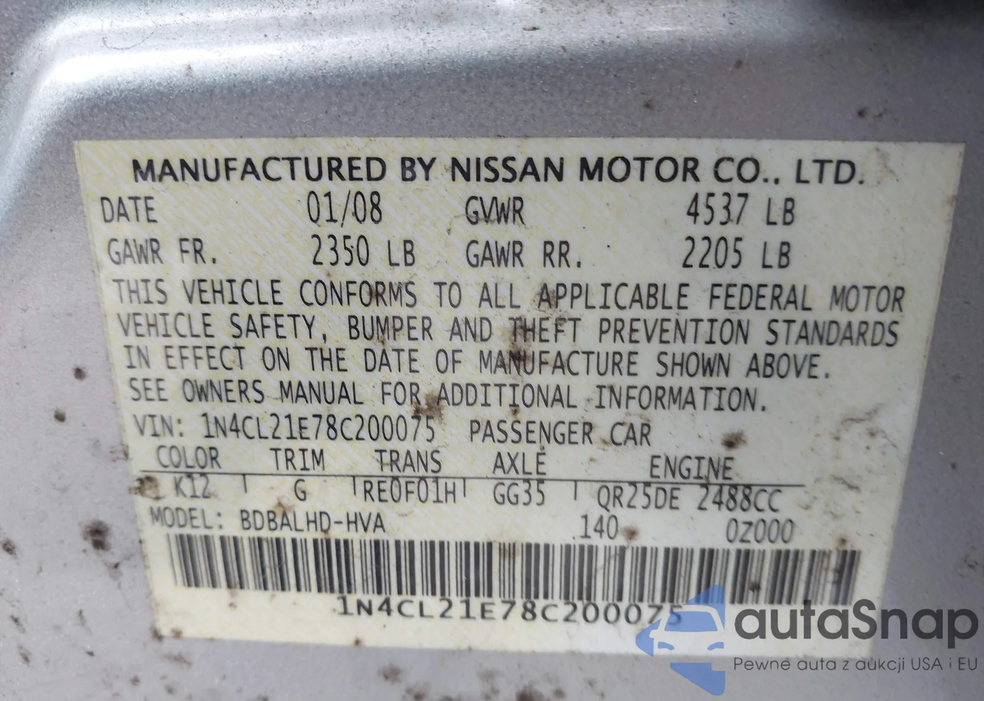 VIN: 1N4CL21E78C200075
