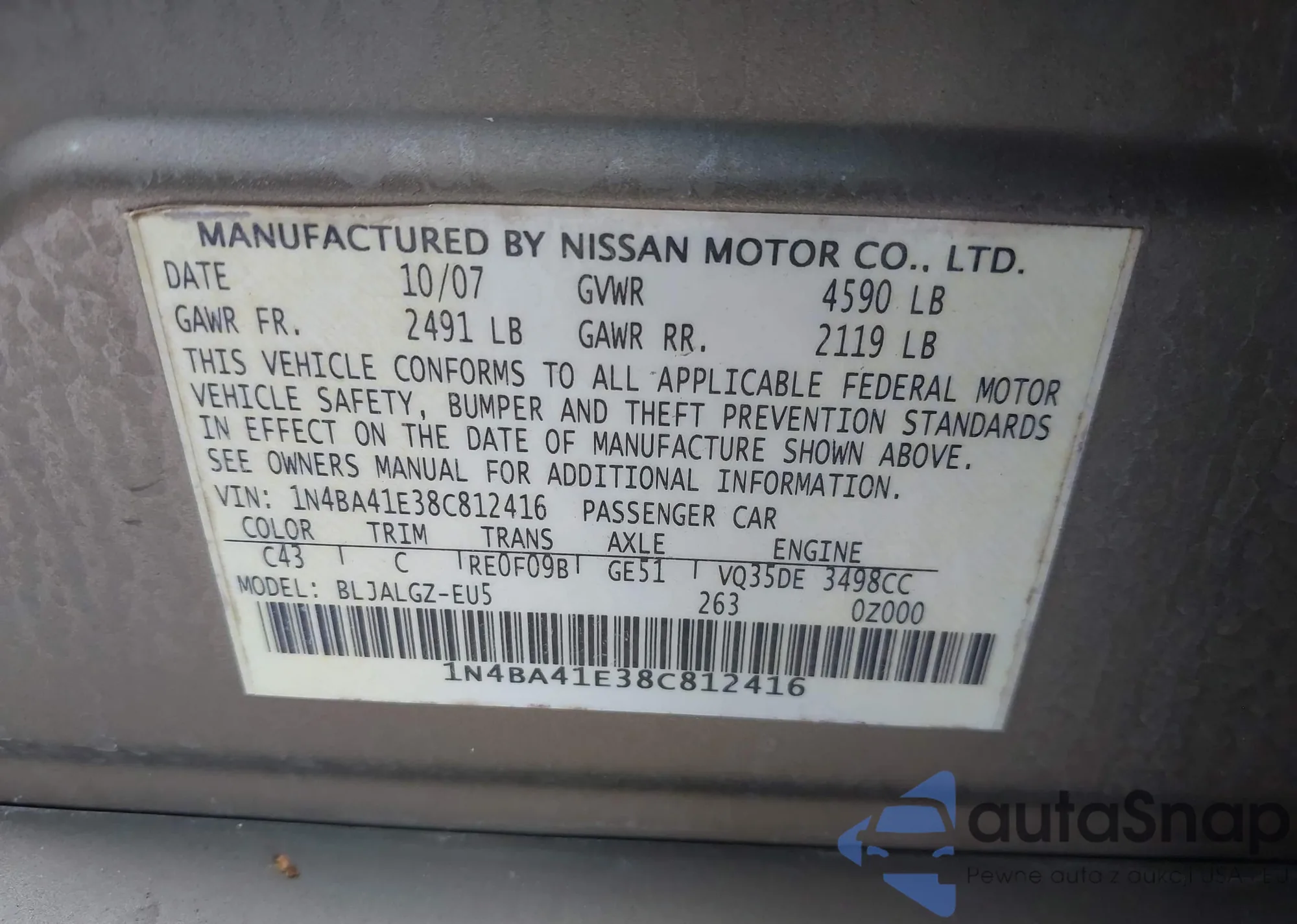 VIN: 1N4BA41E38C812416